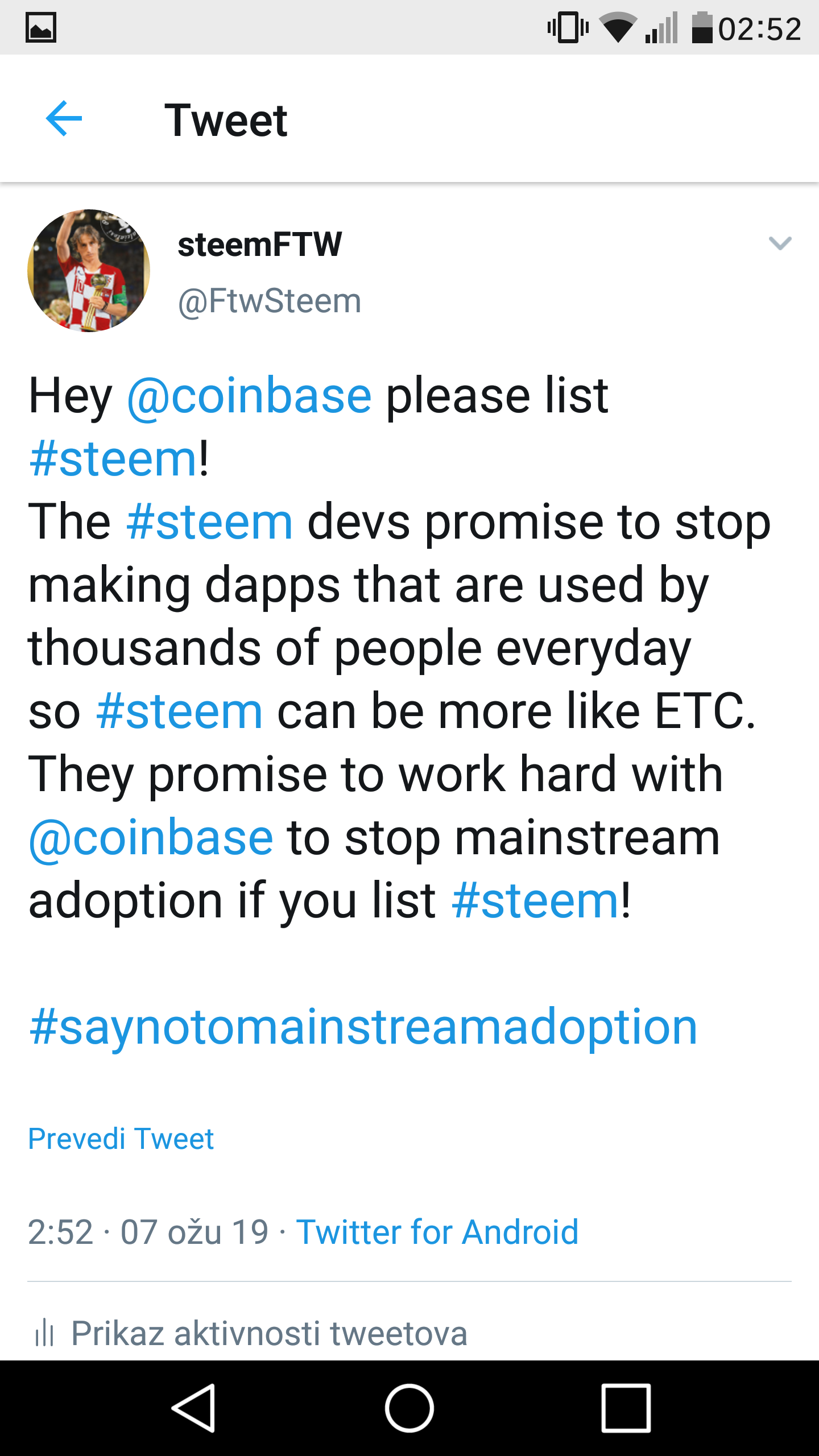 I mean you know its good even if Steem is just mentioned on twitter. Coinbase isnt realistic as being something that will happen, but continuing the #steem campaign on twitter is important.