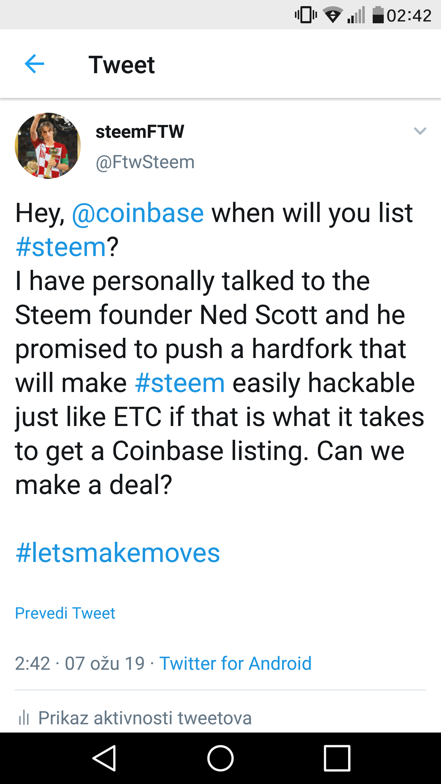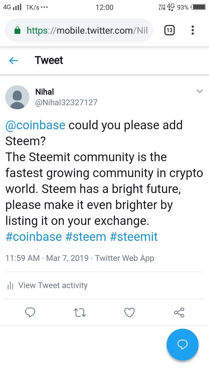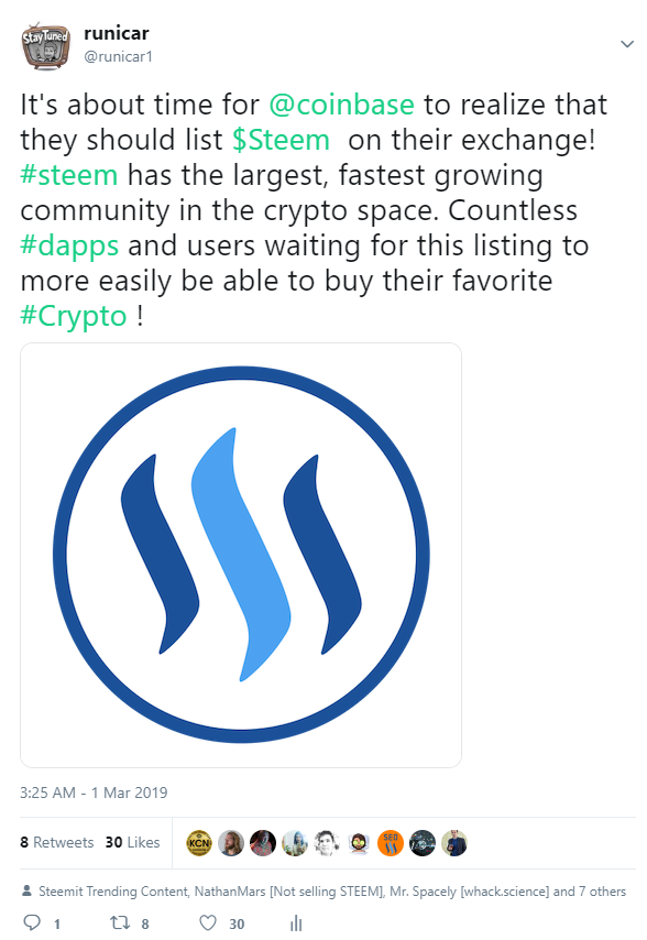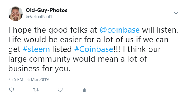 - Tweet about why Coinbase should list STEEM on their exchange (don't forget to tag @coinbase and use #coinbase hashtag)