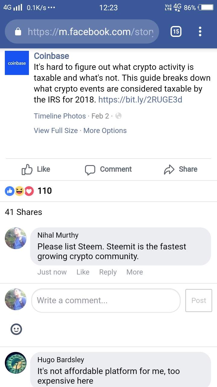 This on Twitter and also on Facebook. Corner them and force them to list Steem on coinbase. Also Resteemed. Hope more people join us to help our community.