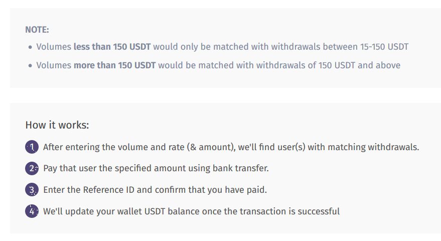 And apparently P2P USDT Transfer is more faster also. But there is a catch on the matching in bitbns as shown below. So you will have to take care of splitting your orders, if you are buying less amount.