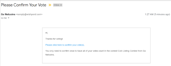 You will be then asked to confirm your vote by confirming your email address. Click on “SEND CONFIRMATION EMAIL”