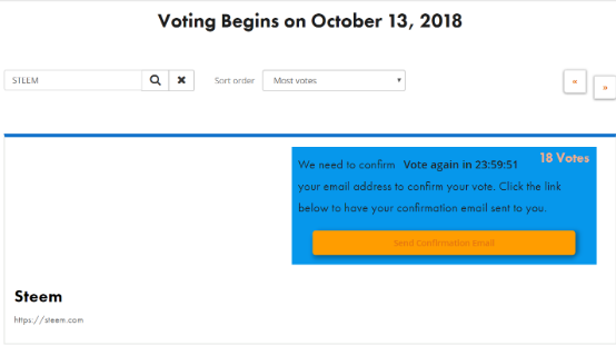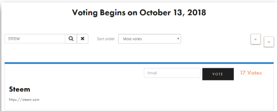 • Scroll to the bottom of the page directly and search for “STEEM” from the list of the nominated coins. Add your email id in the text box and click on “VOTE”