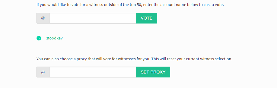 At the bottom you can see who you have voted for and if you want to change your vote. You can also set a proxy so someone else can vote on your behalf! I intend to one day become a witness, but for now if you don't want to get super involved in all the politics and keeping up with different witnesses then you can always set me as your proxy! I will start adding that to my signature in case people want to do that.