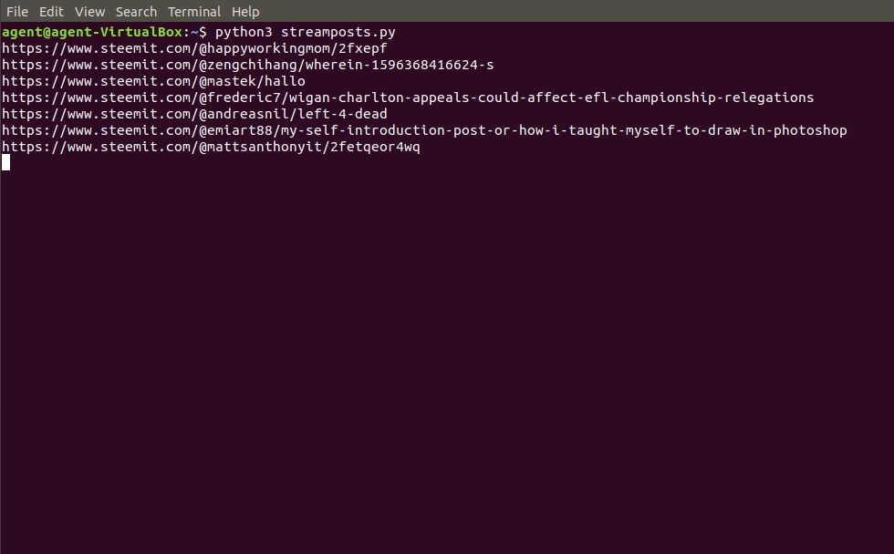 Save the code below to run in terminal with python3 streamposts.py