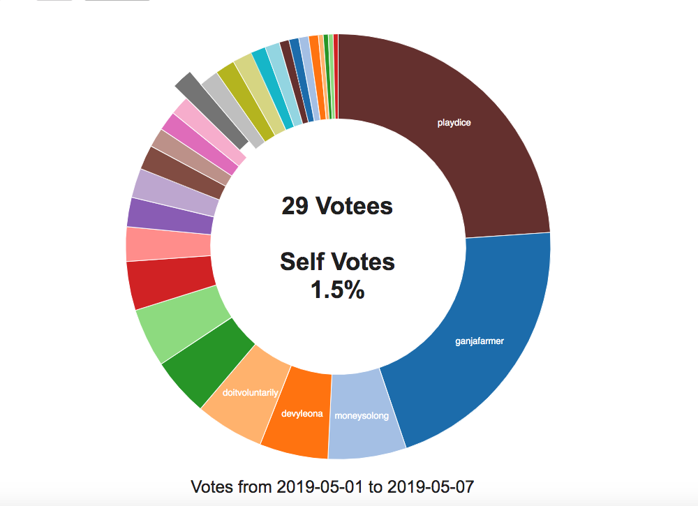 During the first week of May 2019, ONLY 29 UPVOTEES were hit with upvotes from @slingshot.
