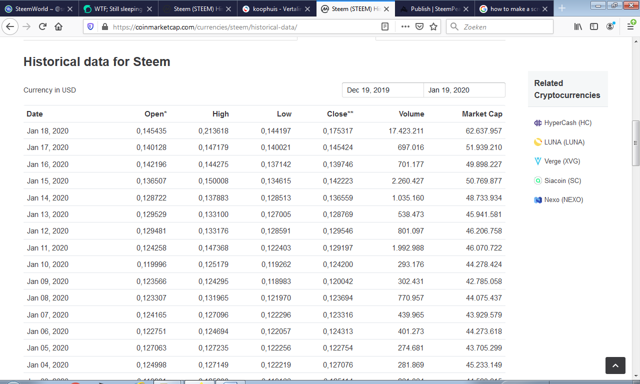 Their token Steem swings for quite a while now between 0.12 and 0.14 cts. If we start buying tomorrow, and then every day with small amounts of, lets say 50K a day each, then we go all-in for what rests on early Saturday morning.