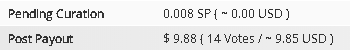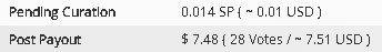 If You Don't Write Often Like Me I Would Suggest That You Look Into Upvoting For A Better Return. We Are Supporting Post That Generate A Higher Return On Curation. Not Every Post Will Do That Only Vary Few but i turned a $o,121 x 7 = $0.847 Into A $0.131 x 7 = 0.917 A Week. And Yes It Will Grow I Will Maintain It On A Everyday Basses Yes I Will Go Over $1 A Week On A $0.01 Upvote Power. And I Will Update You When i Get There