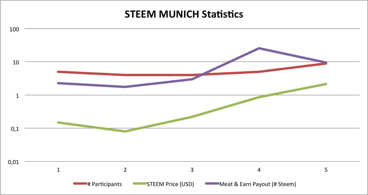 I started to track the number of participants, the Steem price on the day of the Meetup, and the Meet & Earn Payout in Steem.