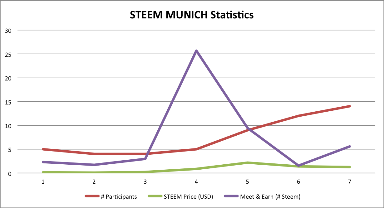 I started to track the number of participants, the Steem price on the day of the Meetup, and the Meet & Earn Payout in Steem.