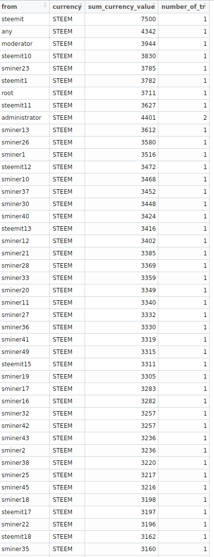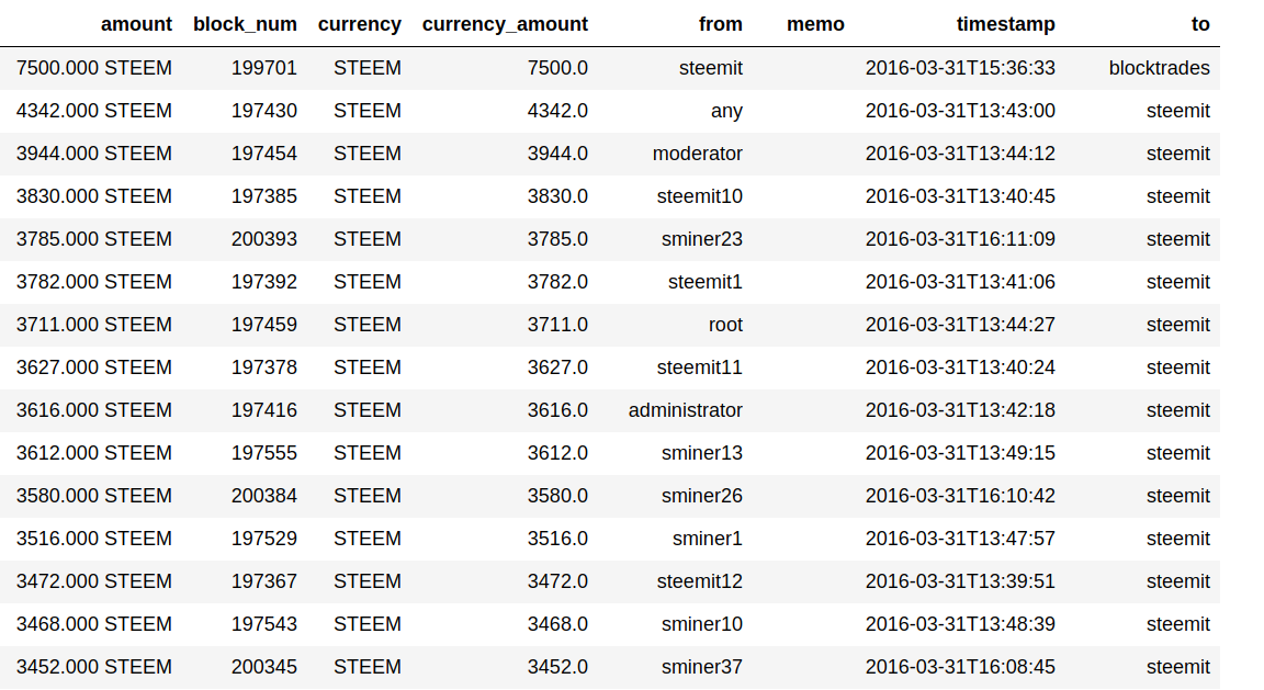 Ok, lets move on, and check what kind of transactions happened during the first week.