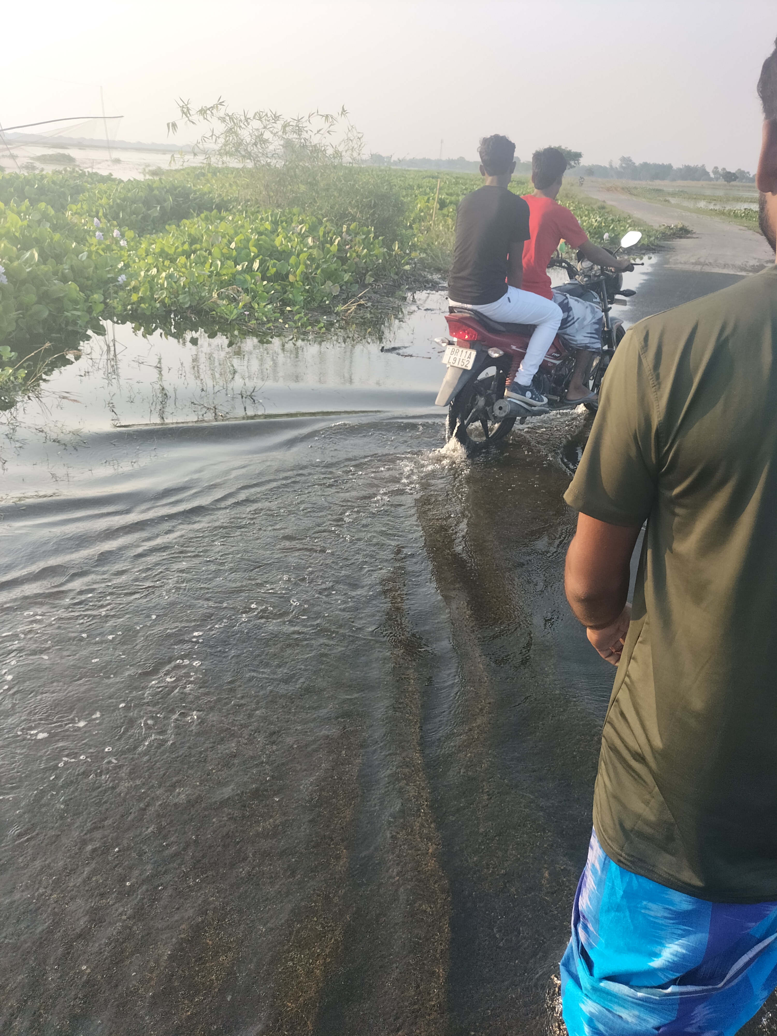 The picture you are seeing or the other side of the road where water is visible and it looks very beautiful. So I took a picture of it so you guys can see. Flood comes almost every year and this kind of water keeps on coming. And due to which there is some loss to us but one thing is that we also like this inundation very much because every side becomes green. .