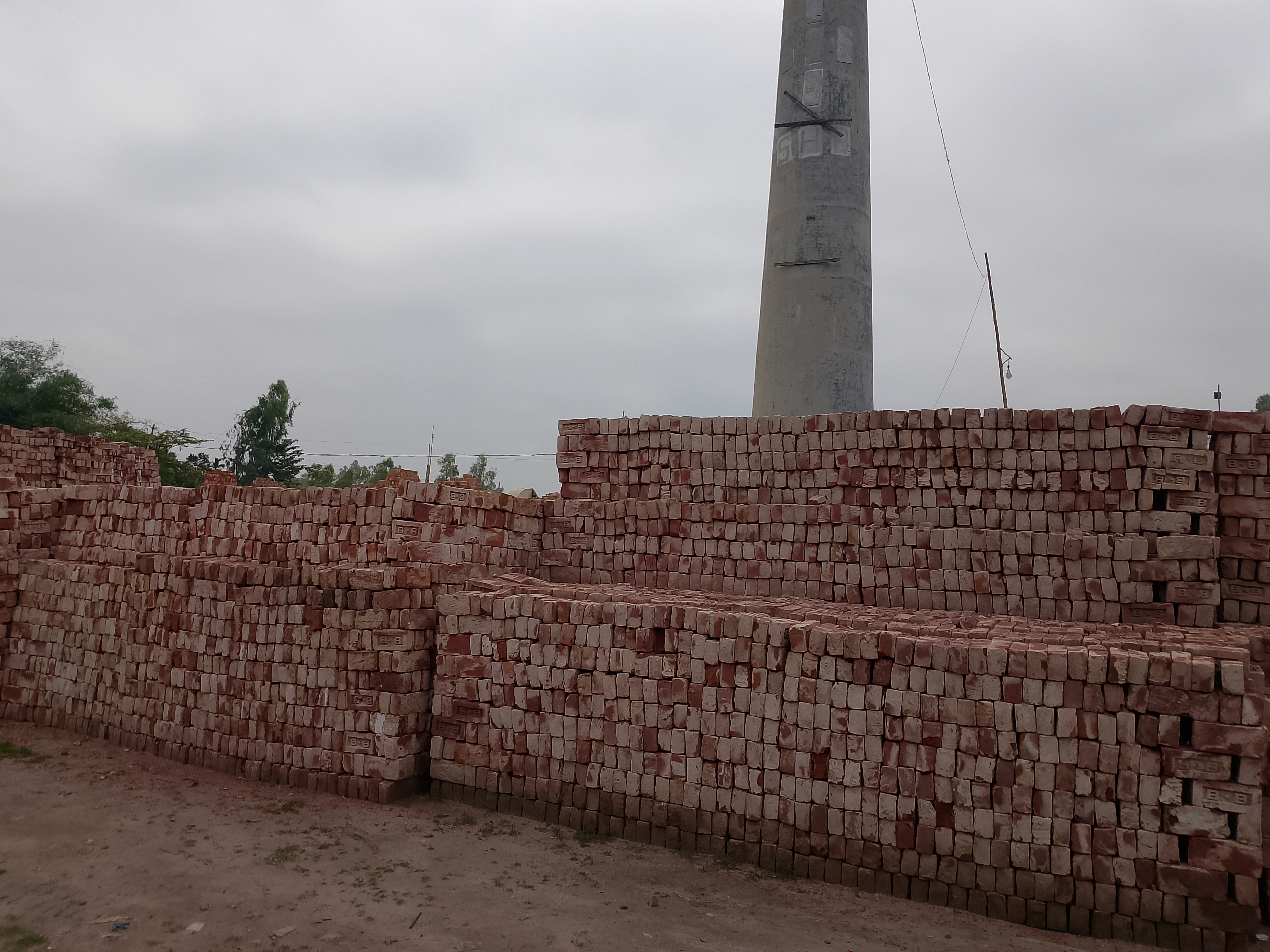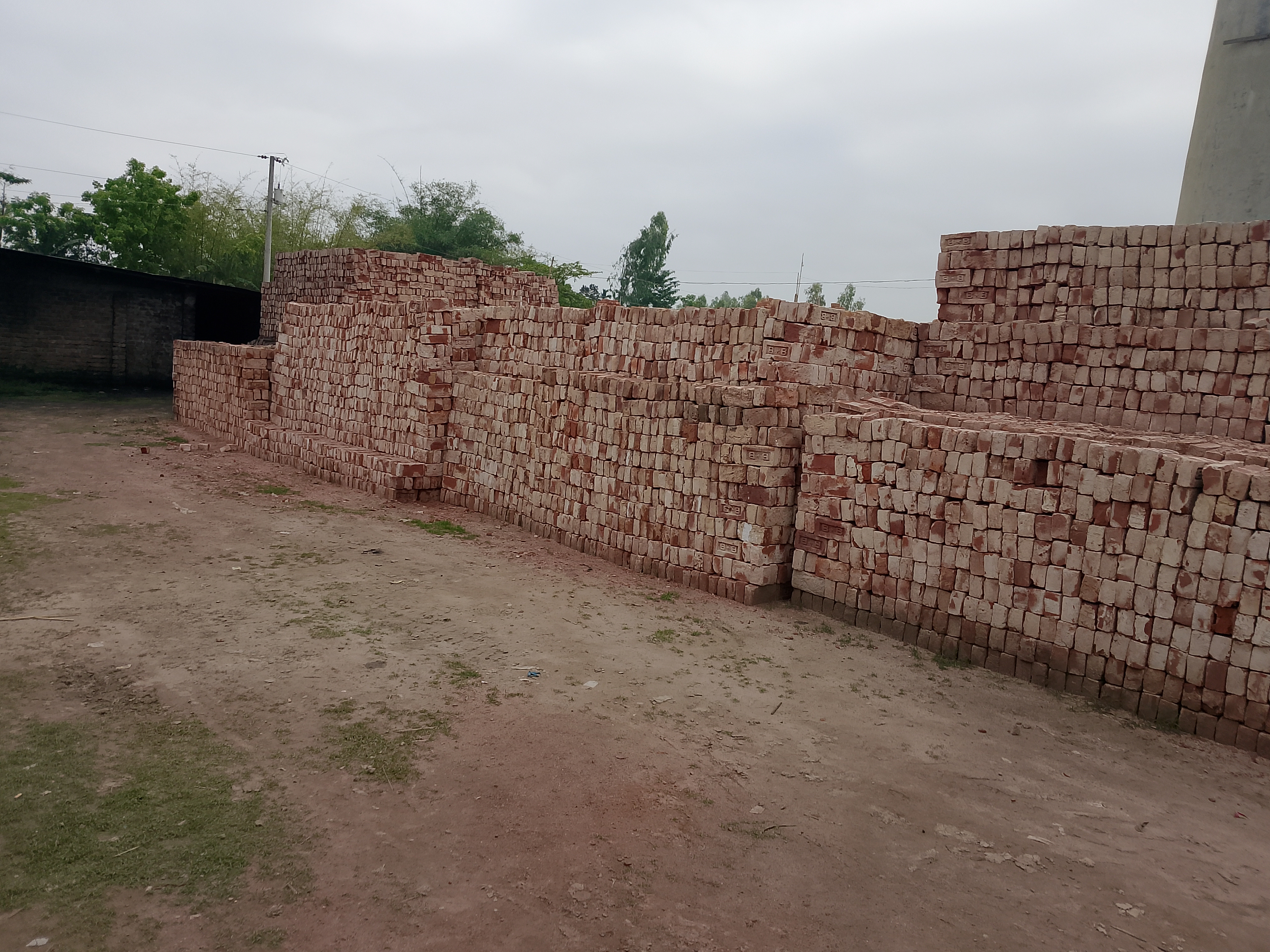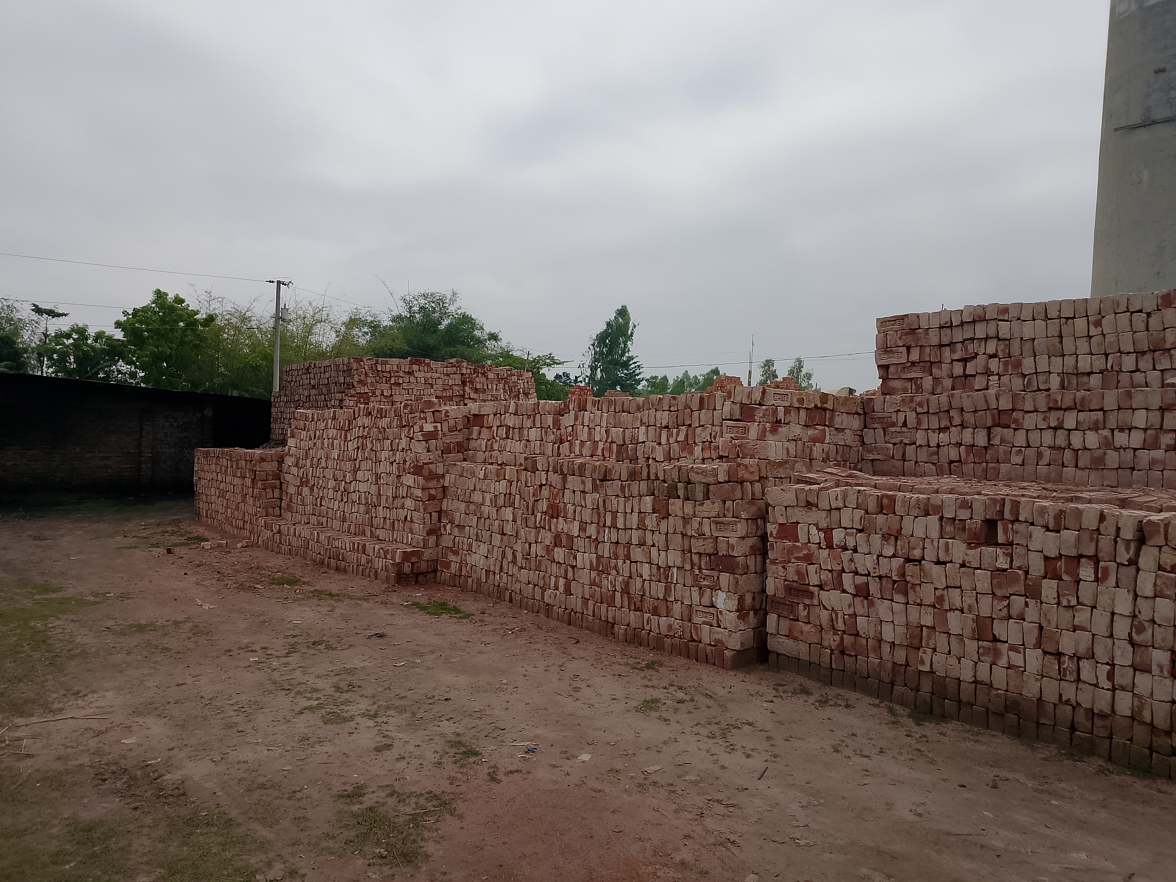 People move around and collect some brick dust because we needed it. At this kiln, they are selling brick dust as well as bricks. A kiln contains many bricks that are sold. Today, when I went there, I saw a large number of bricks nicely arranged, and they keep records of them.