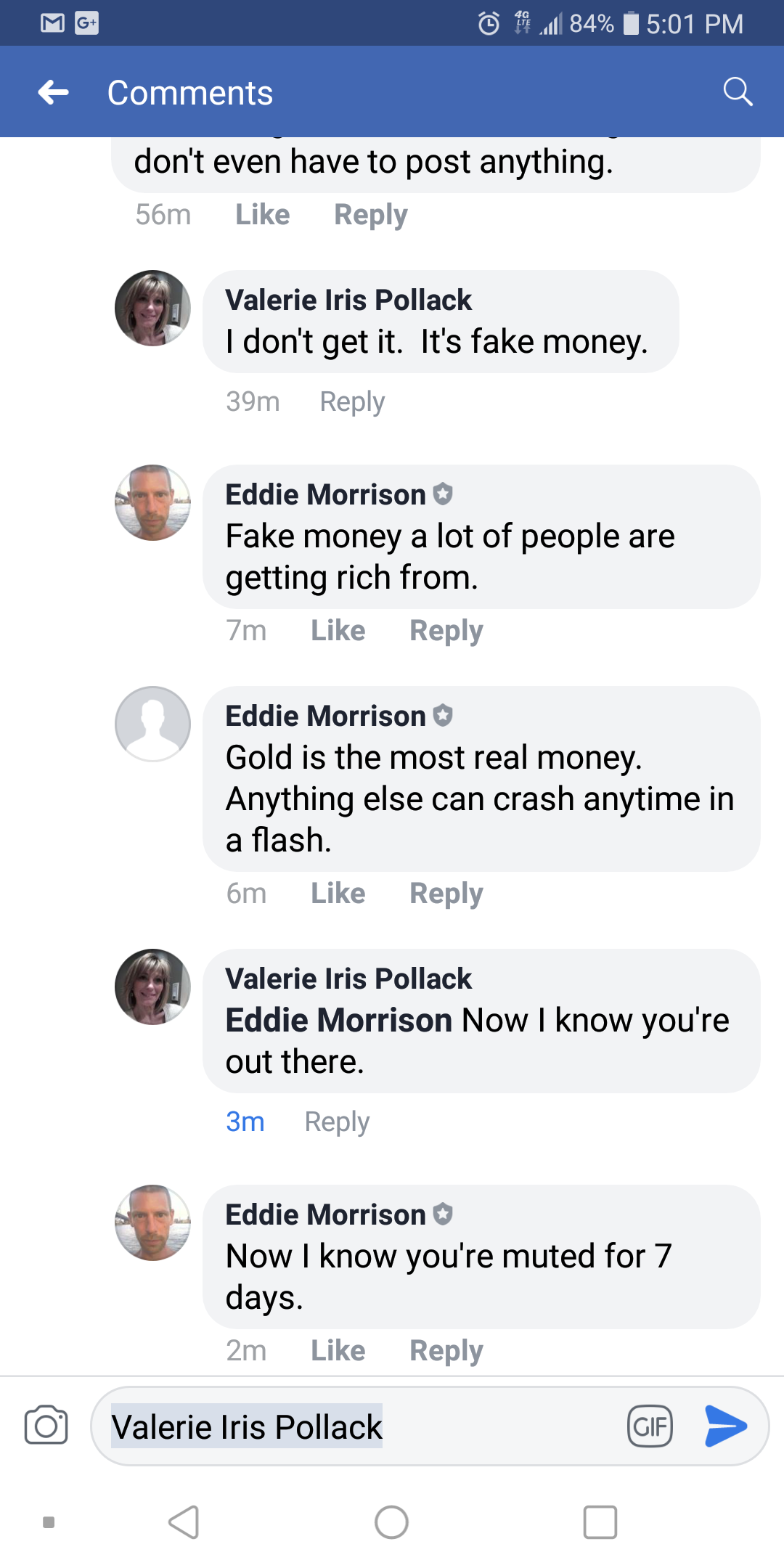 Some aborted fetus posted in my 25,000 member FB yard sale group today asking how she should invest money. A few people gave her grief for posting that in a yard sale group, even though my rules clearly say discussions are allowed; and I stuck up for her. I took the time to thoroughly explain how STEEM and the related sites work, and why I choose to invest in it; and this is what happened. She left my group and blocked me after I muted her.