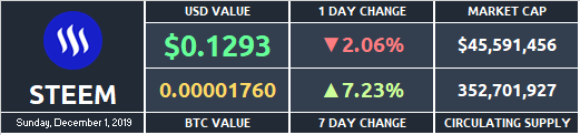 STEEM Curation Report (W2 - Dec. 01, 2019)