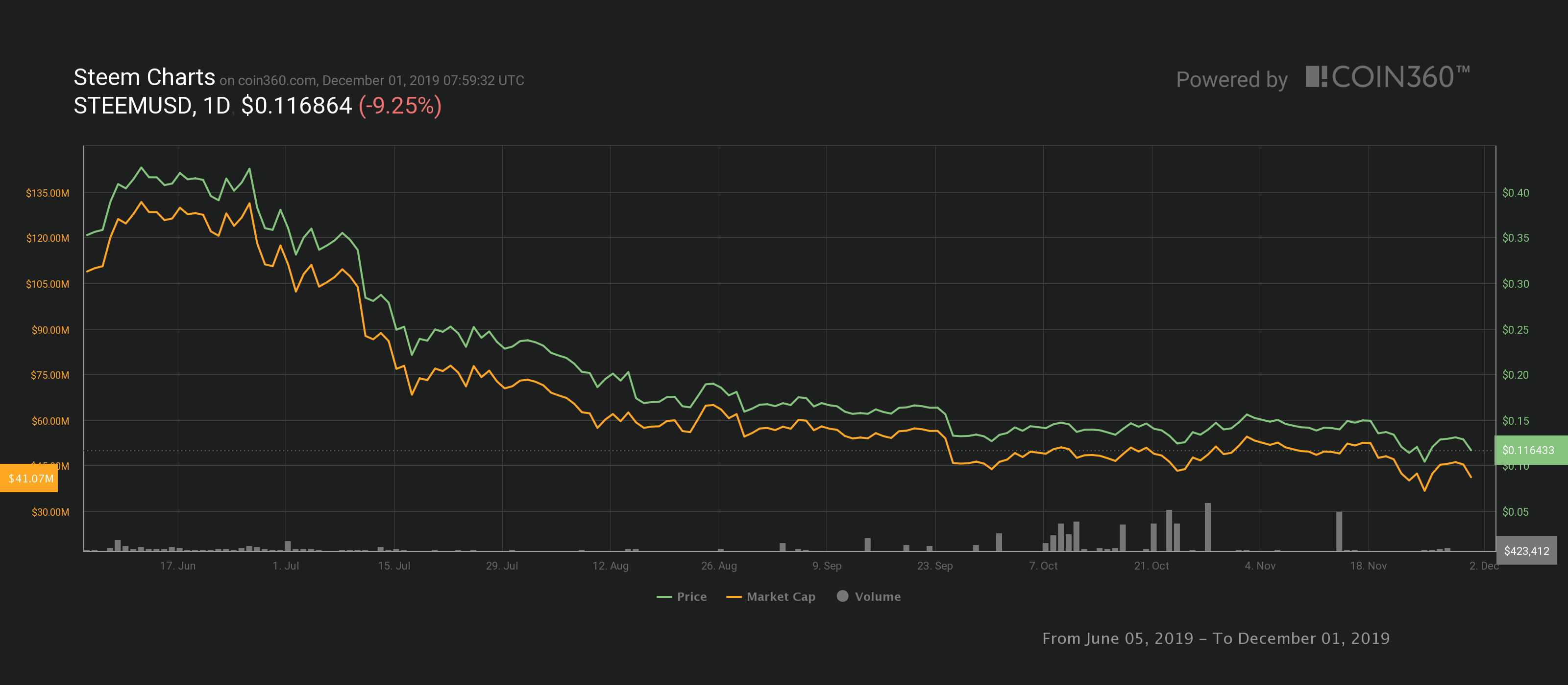 Below you can see the stats of STEEM at the time of posting. The price of STEEM has been steadily going down over the past few months therefore I think this is a perfect time to accumulate and grow my STEEM POWER.