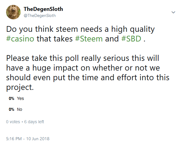 I'm planning on opening a casino and I'm currently looking for partners and also potential users who would be interested. So ill be running a poll on twitter and would like this to be taken very seriously.