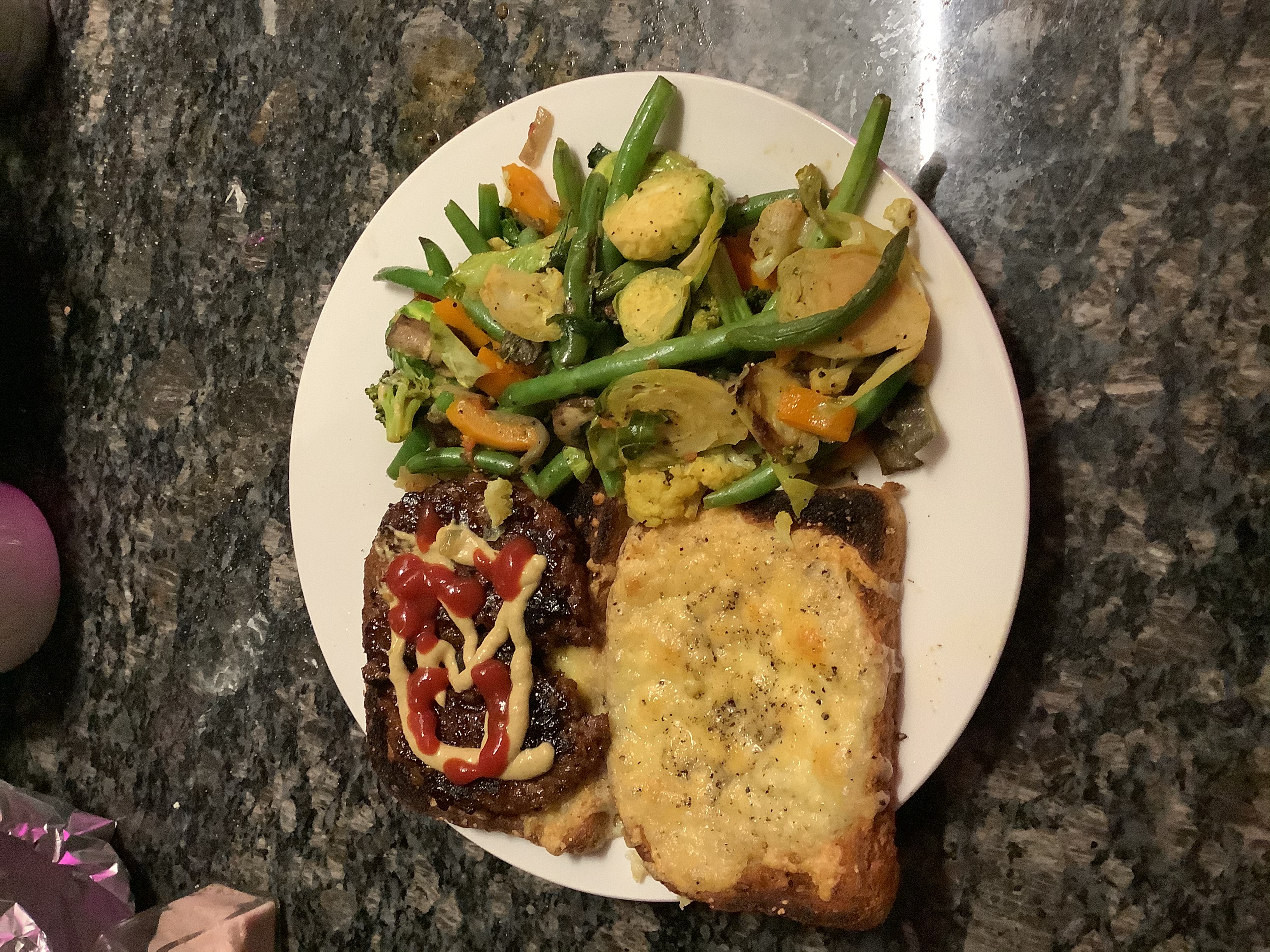 put the grilled veggie and patti melt burger on a warm plate and had a feast that I’m immensley grateful to have enjoyed- was absolutely delicois- good work me!