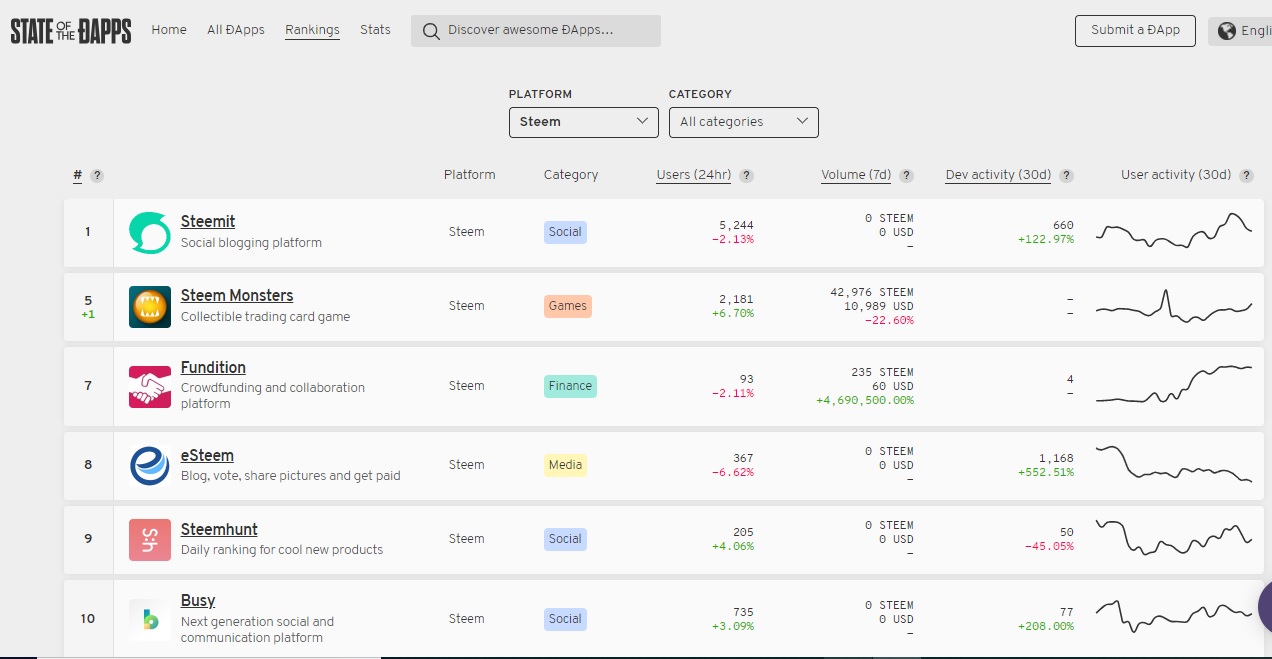 Six Steem DApps in the top 10 despite all the chaos.