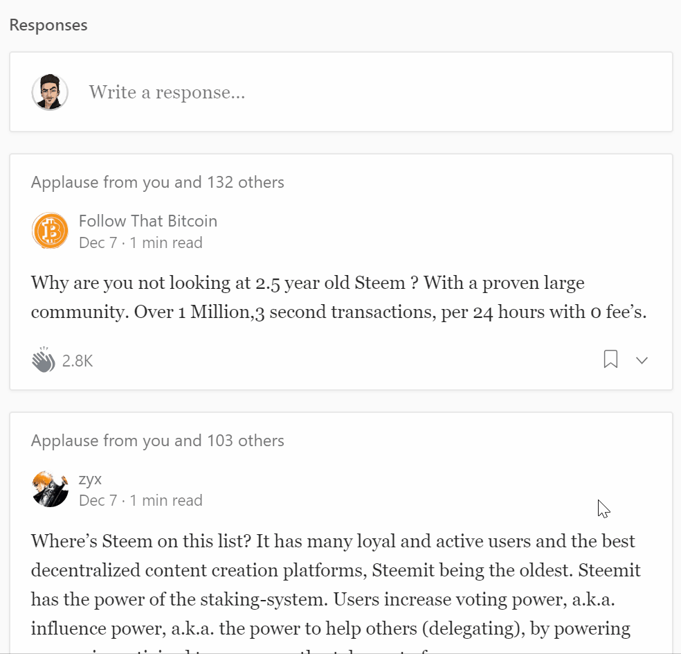 Quite a few, very well thought & highly valuable, comments had been written and hundreds of Steemians clapped to show their support.