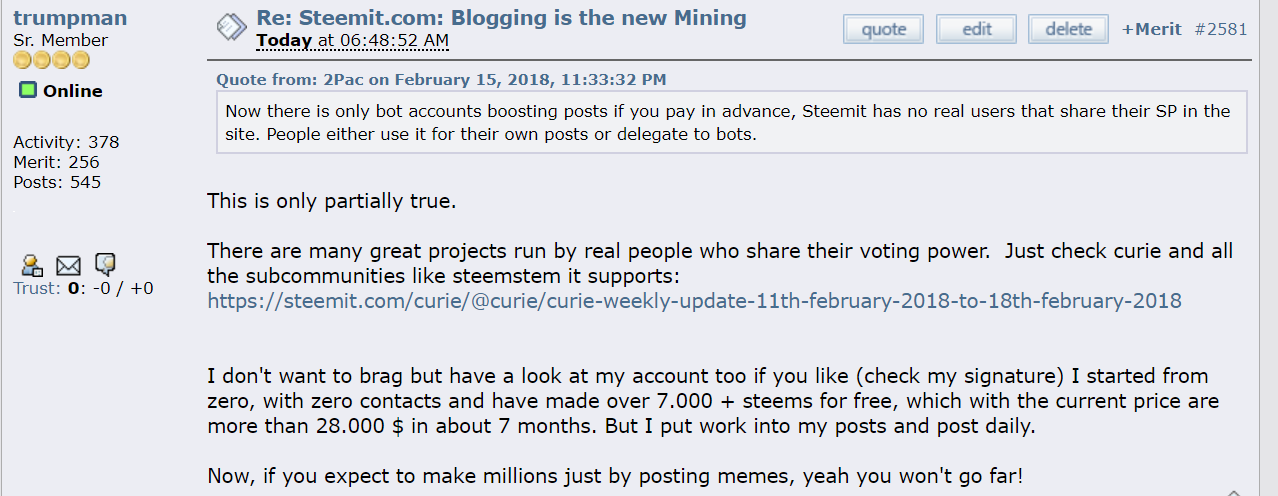 In one of my blogs on another website, where my previous post gained 2900 (and counting) views and 8+ comments, I created a post that explained how people could earn easily from home with Steemit and also how Steem was an excellent crypto-currency for investors to invest in.