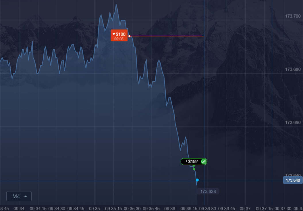 거래 시작: 원하는 자산을 선택하고, 상승 또는 하락에 배팅하여 거래를 시작하세요.