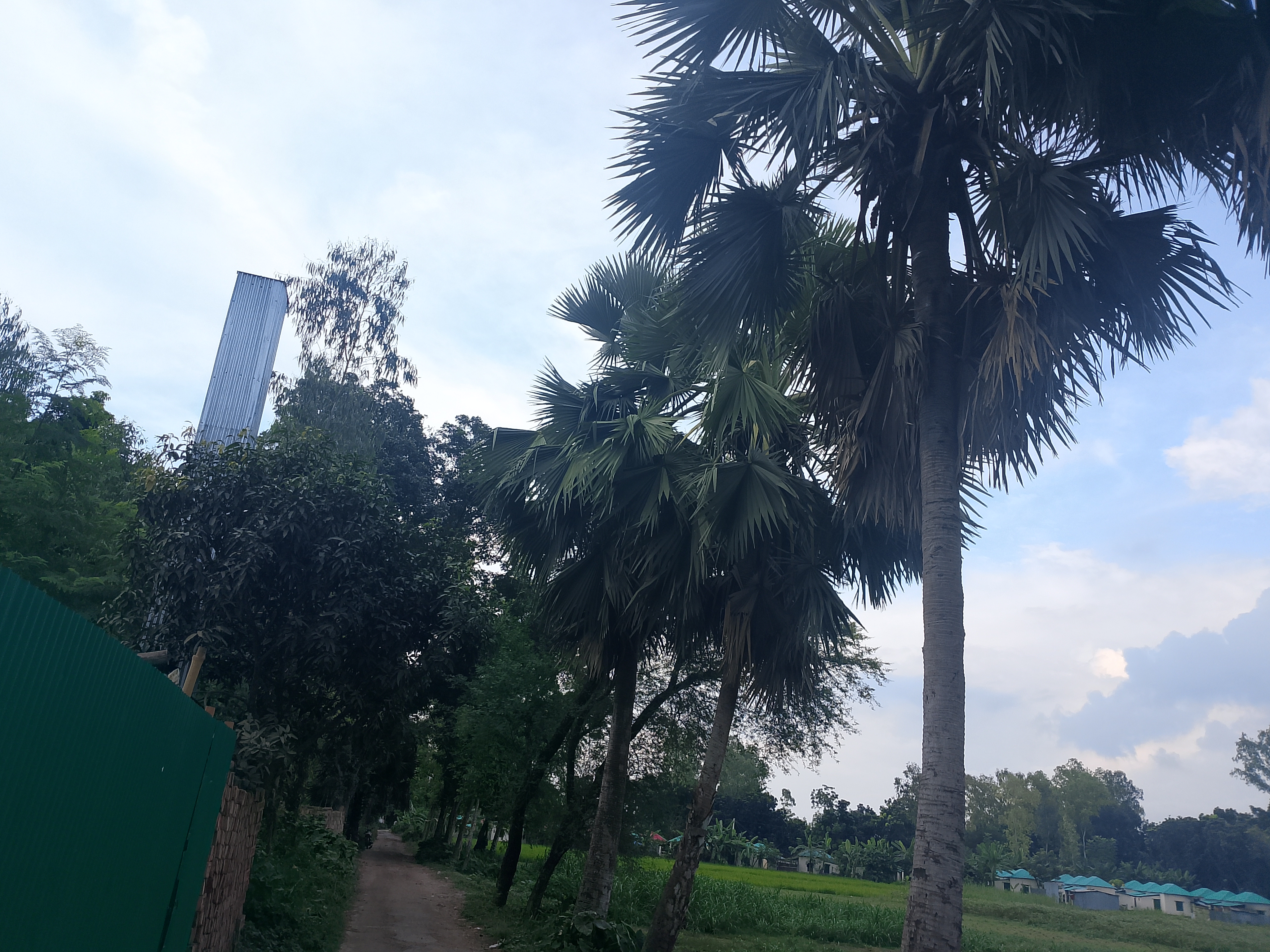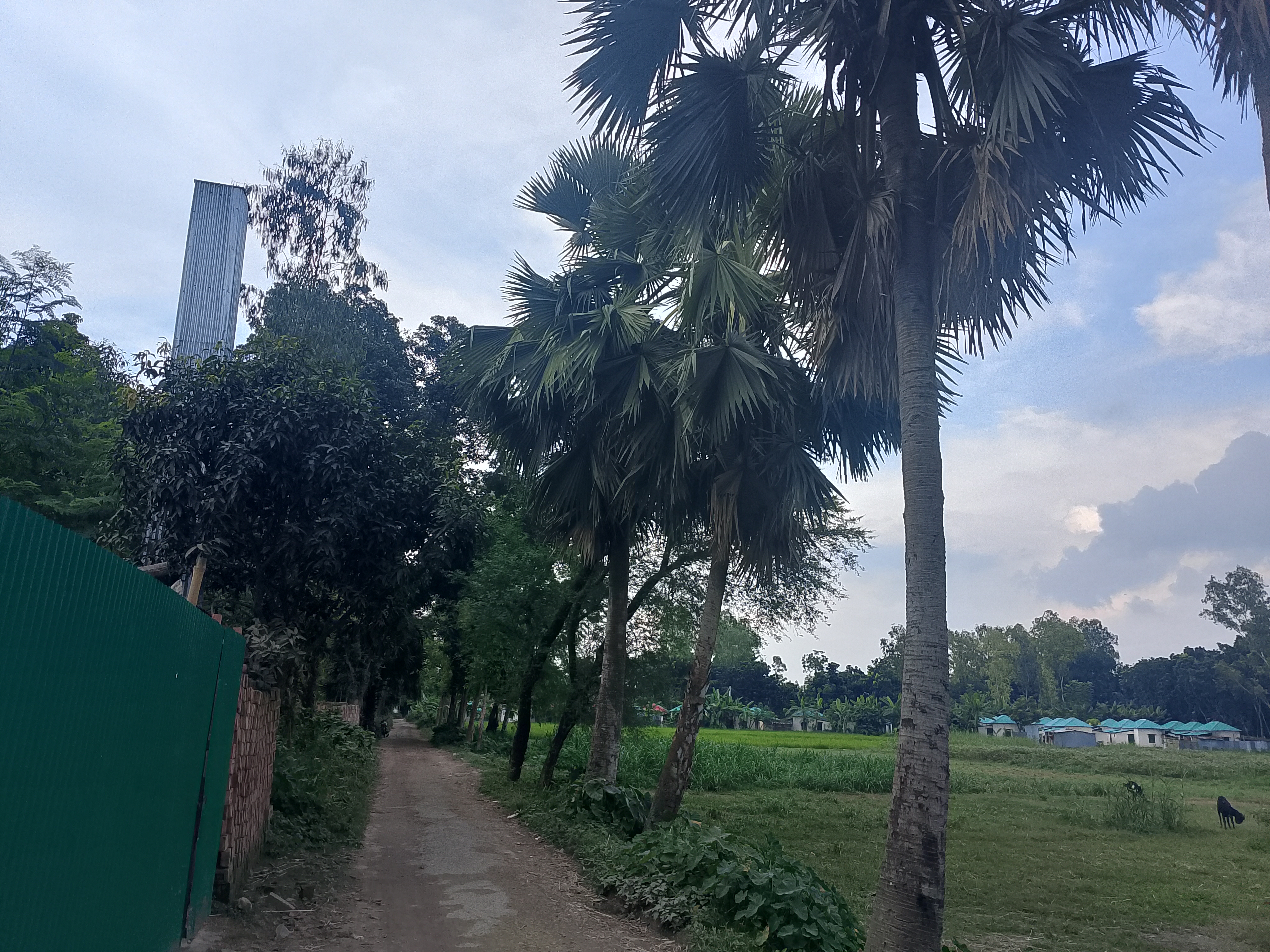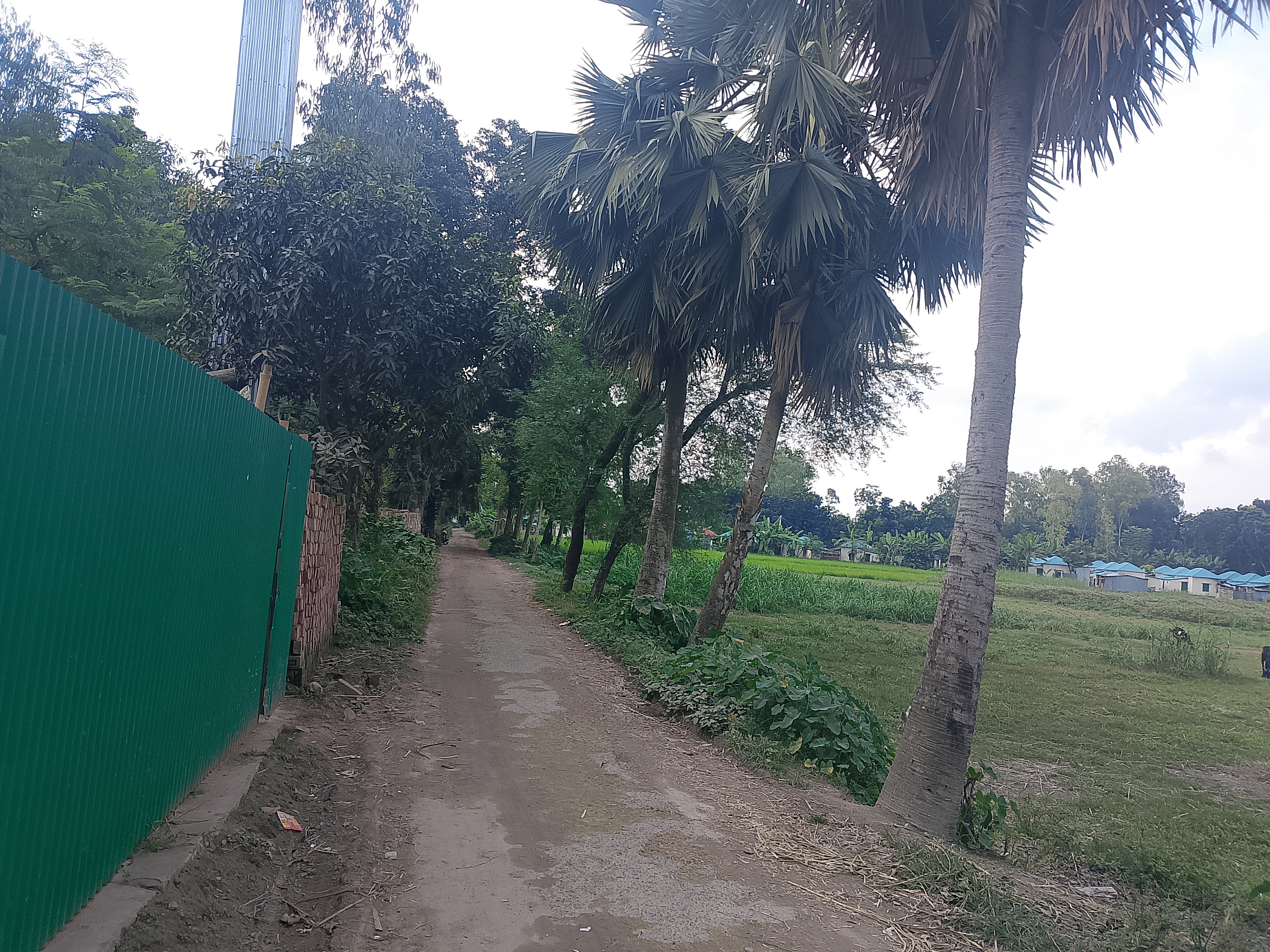 This is a village dirt road, and we were walking along this dirt road. Beside the road, there were big trees that could be seen here. The road was quite good and clean. I found this road very nice and beautiful, and we were walking along it. I really liked this road, and when I travel on it, I feel very good.