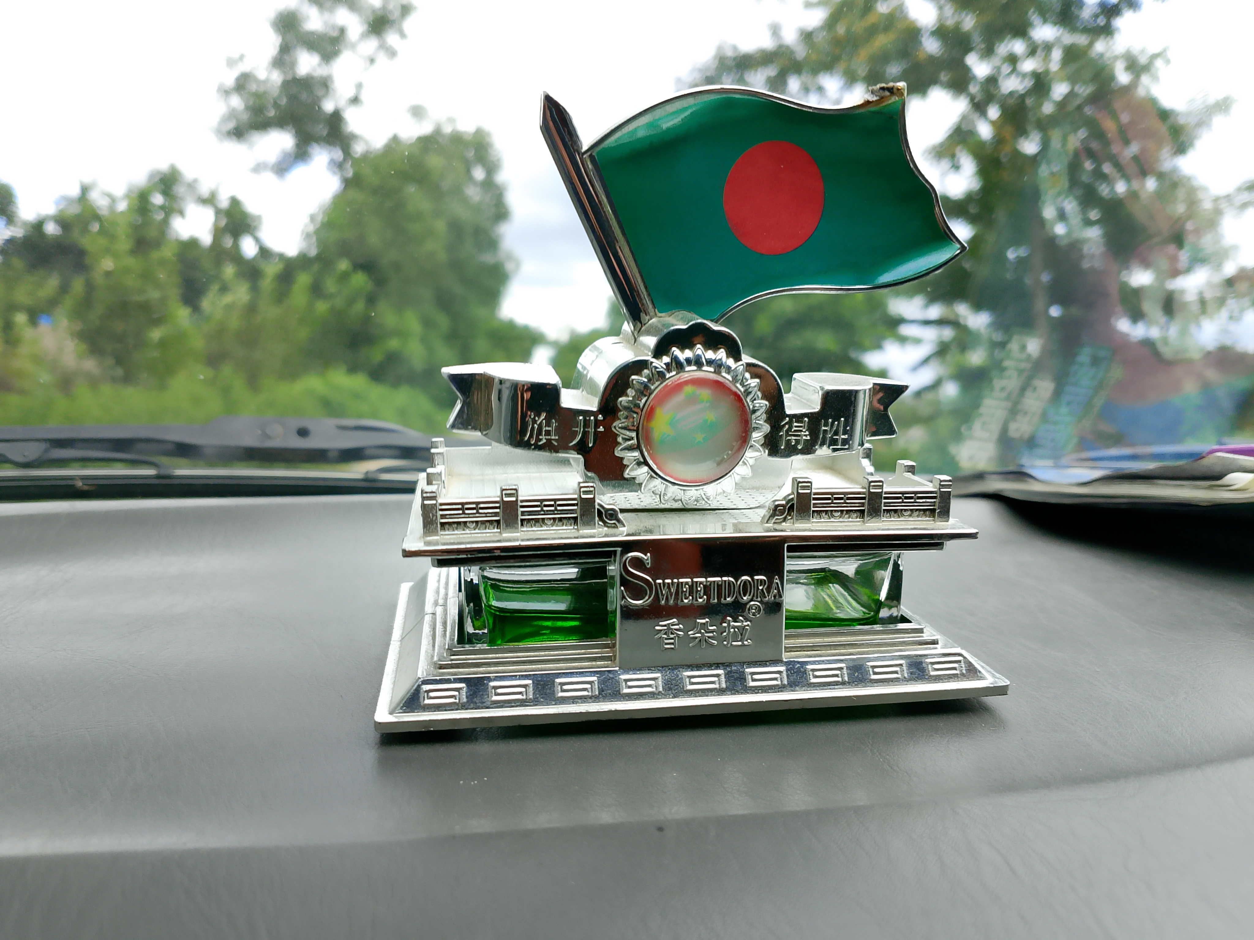 Today, I got into someone's car, and after getting in, I saw that he had beautifully placed that showpiece at the front of his car. After seeing it, I felt really good. It looked nice. Because of placing this item there, two kinds of beauty emerged — the overall decoration and the beauty of the flag itself.