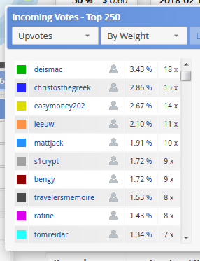 That is the list of the top 10 users you support and the top ten users who support you. It may be a perfect time to stop all of your auto-votes as it appears those you auto-vote are not even voting for you.