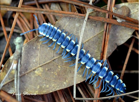Meet Pararhachistes potosinus, commonly known as the Blue Cloud Forest Millipede. The creature is endemic on Mexico and.... that's all I could find! Actually, after spending more than an hour searching about it in all kinds of places the only scientific publication I could find mentioning it was the one where it was first described ("Chamberlin, R. V. (1943). On Mexican Millipeds. Bulletin of the University of Utah, Biological series, 8(3): 1-103") and unfortunately I couldn't access it.