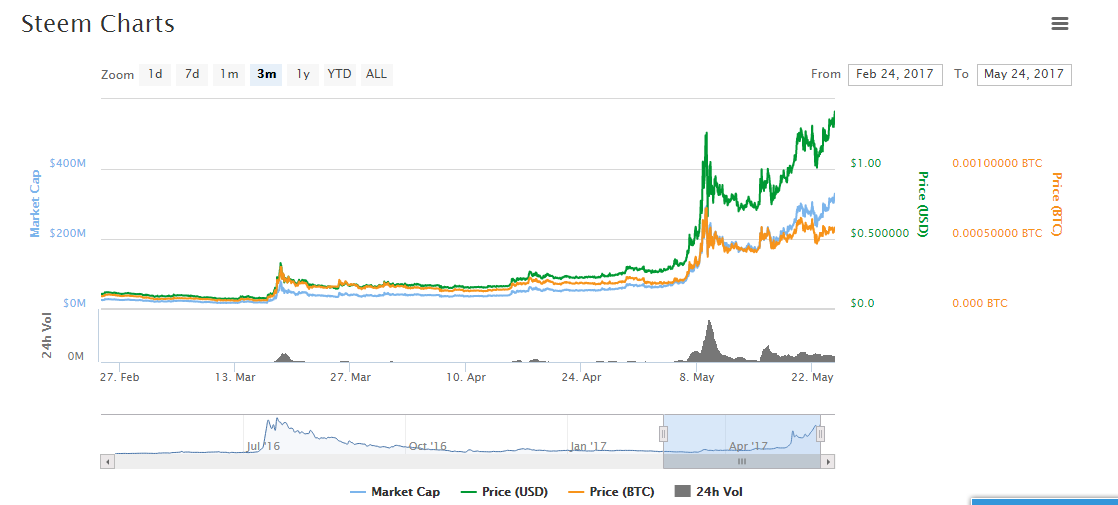 With this recent surge, Steem, which now valued at around $1.40, reached a new high in 2017.