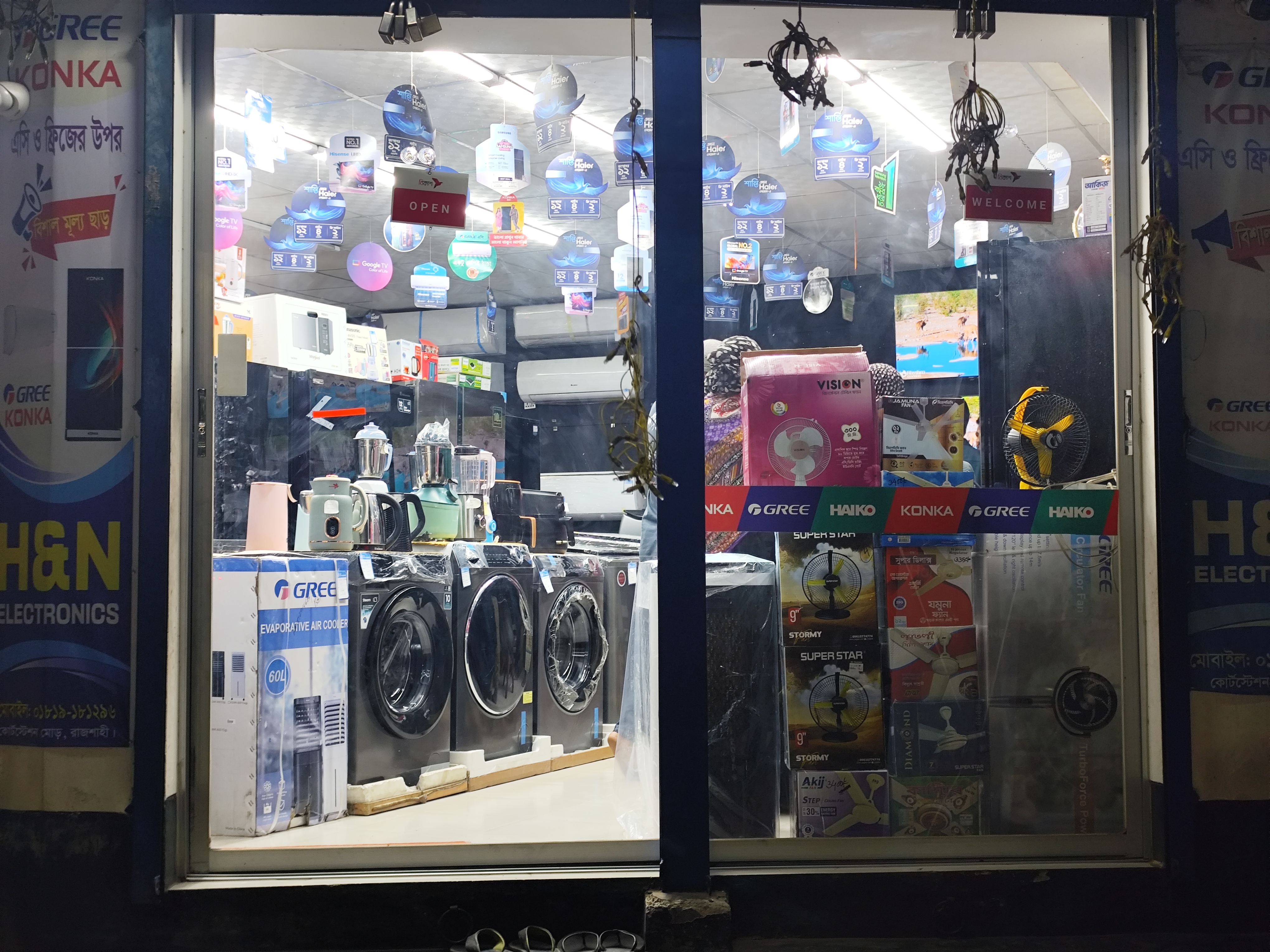 Entering the H&N Electronics shop, you will see a wide range of modern home appliances and electronic products. The shop attracts the attention of customers with its modern decor and high-quality collection of home appliances and electronic products. There is adequate lighting and electric fans inside the shop, which creates a comfortable environment for customers. The shop is monitored by CCTV to ensure security. The collection of modern home appliances and electronic products here has made this shop familiar to the customers.