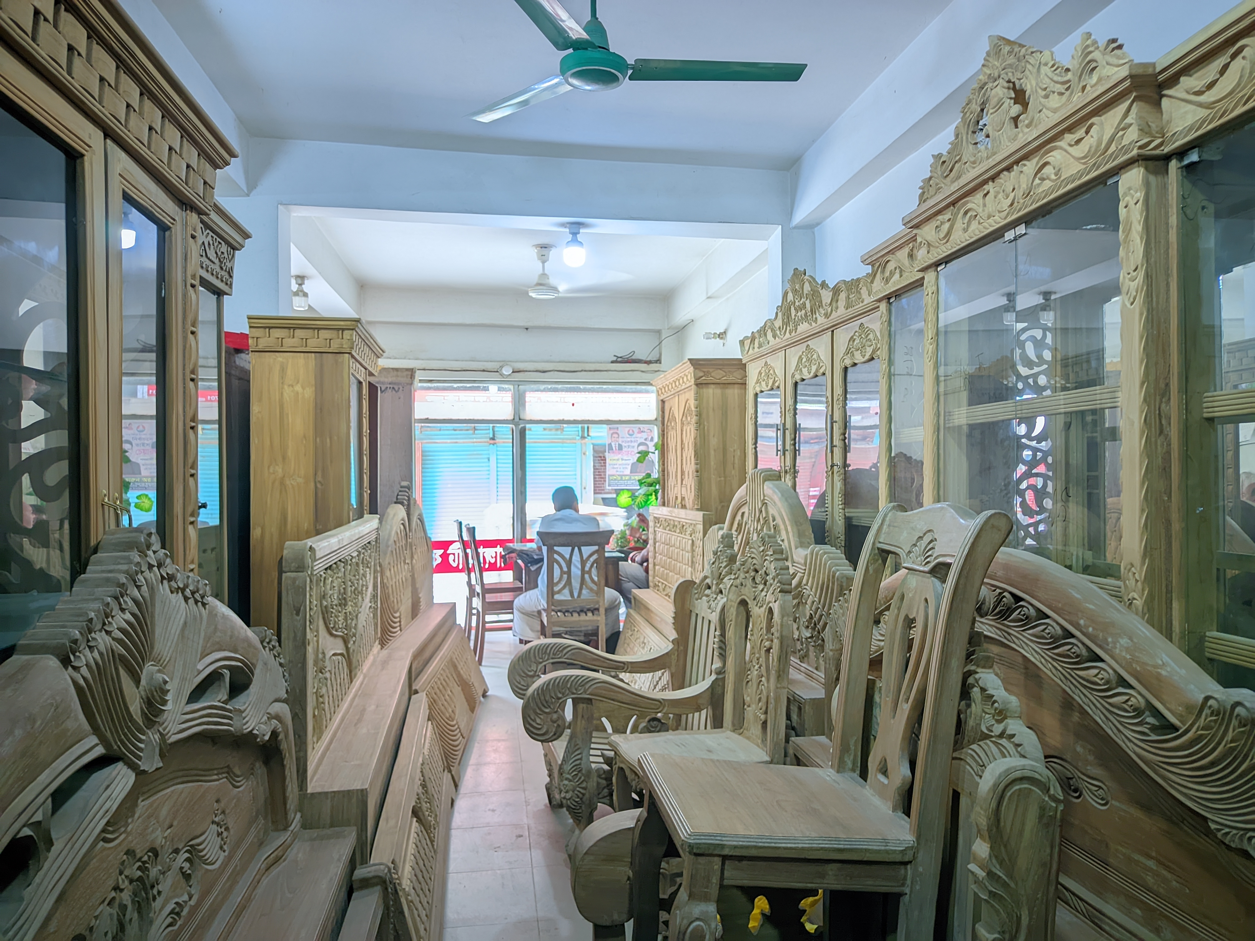 There is a cash counter in front of the furniture where a manager always sits and he exchanges the bills of the furniture from all the customers. Apart from that, you can see different styles of sofa sets which are used in homes.