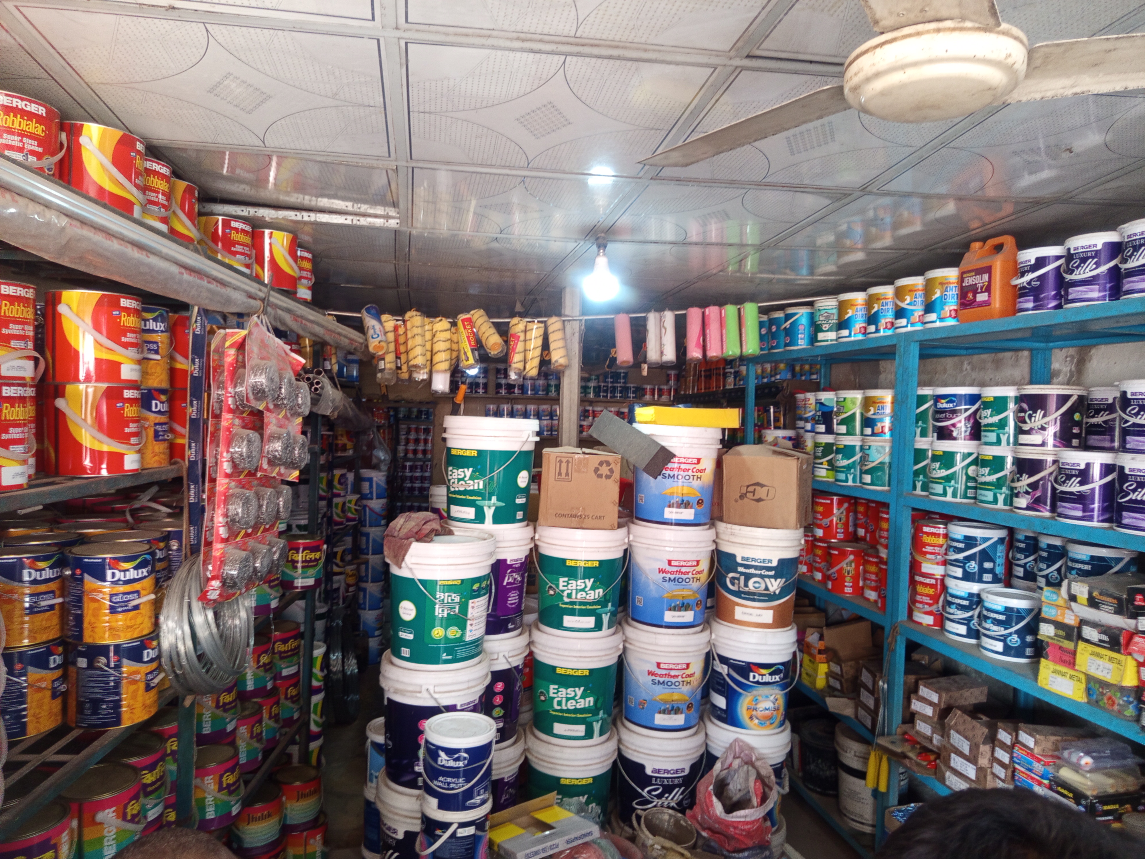 The inside of the store was completely filled with hardware products. It was as if there was no shortage of anything here. Especially here I noticed the colorful items across a wide area. One of the various high-quality colors was Berger. There are also robbialac etc. These colors are imported based on customer popularity reviews. Apart from paint, there are many other types of hardware products available here.