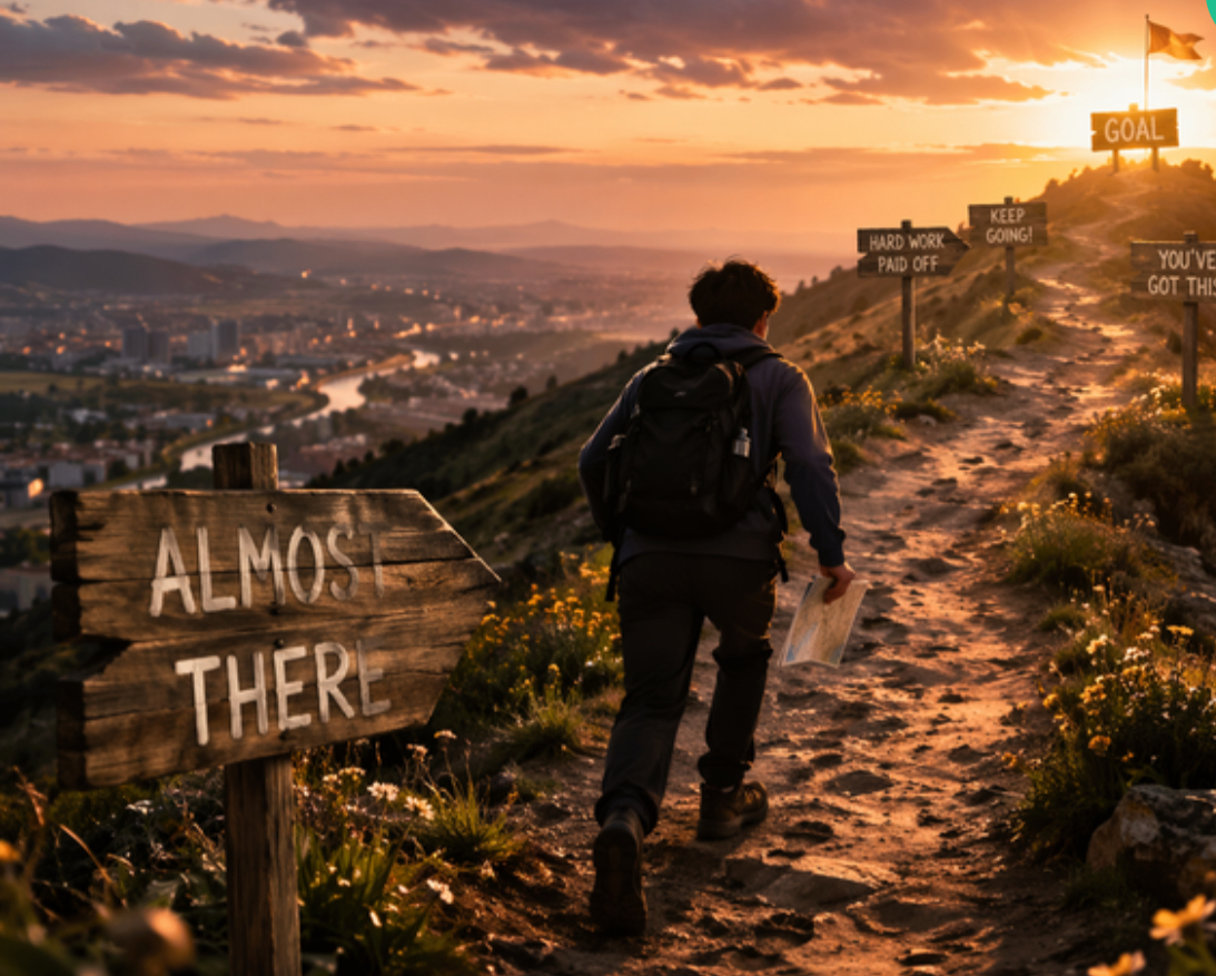 This moment is a defining point for me. If I give up, all my efforts are wasted. But if I keep going even when it feels difficult, I will move beyond almost into achievement