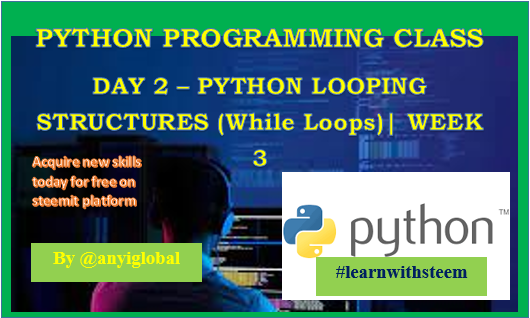 Hope you're doing great!! Welcome back to my Python programming class. Today is the third day of the Python Programming class week 3. If you have followed my week 1 & 2 till the end, you must have acquired some basic Python programming skills that can help you start your programming career. However, if you did not follow my week 1 & 2 classes, please visit my blog now @anyiglobal to see all my week 1 & 2 classes.