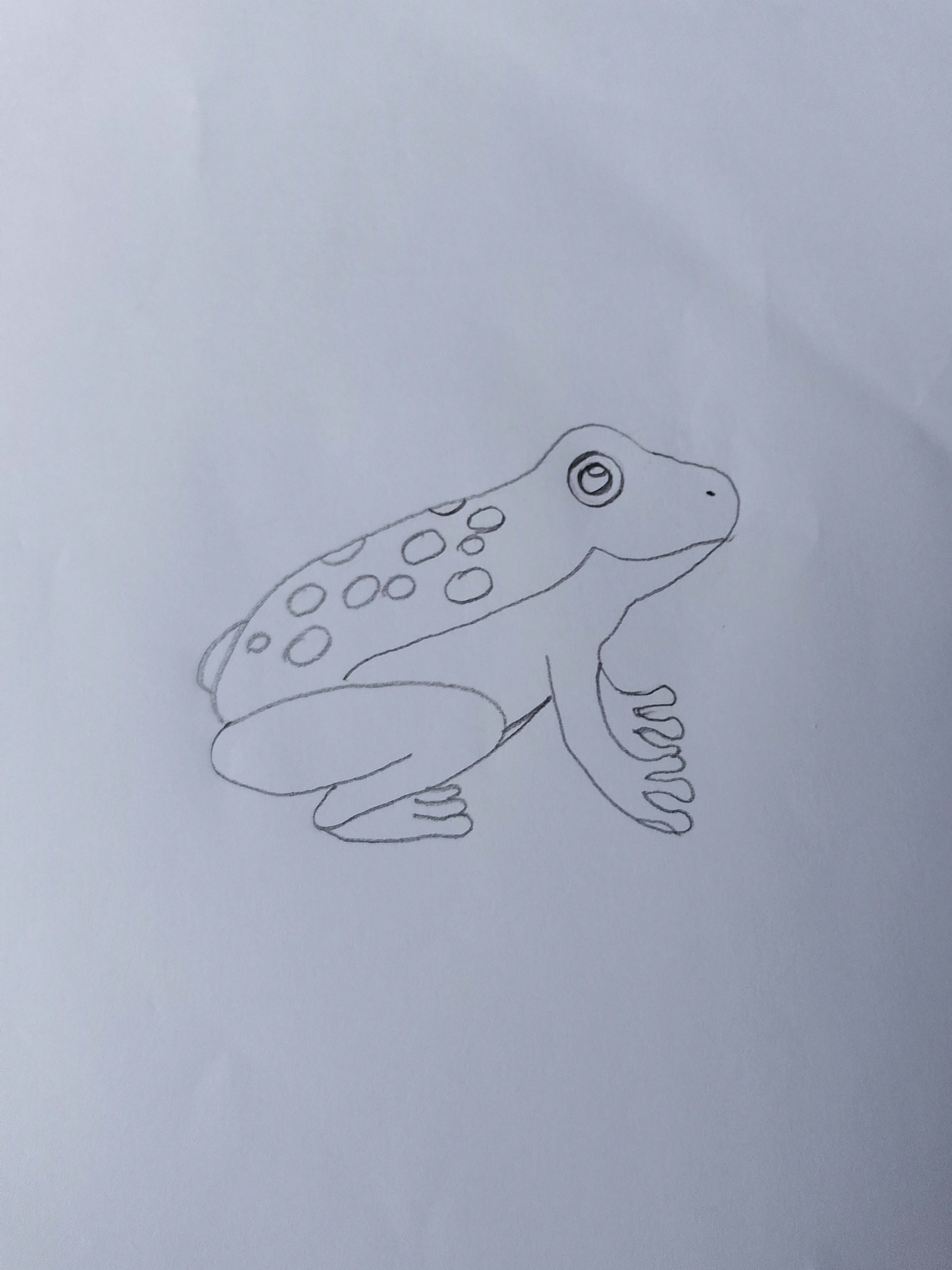 🔹First, I lightly sketched a frog on a white sheet of paper using a pencil.