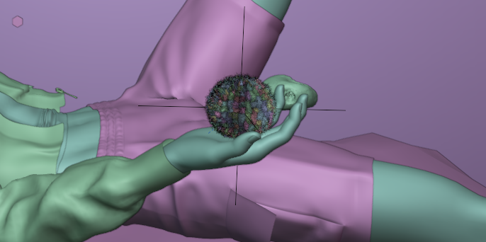 and lastly, now that we have a view of the character and our ball setup, we simply have to sync our ball to our animated hand, it seems backwards, but its a clean, easy and stylish approach.