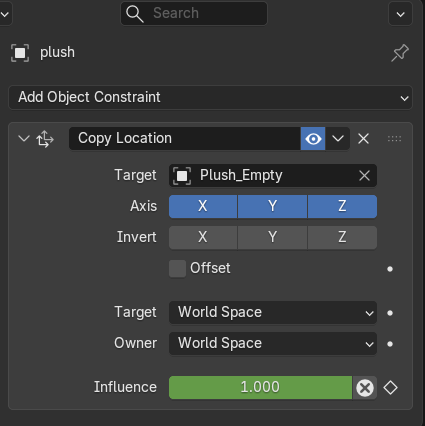 Also add a Copy Location constraint: Click on the ball and go to the constraint panel and add one, attached to the hand bone of your character Or the Empty Parented to your Hand earlier.