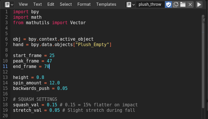 the simple python script should do two things, Set the Influence of the constraint to 1, so the Ball follows the hand when the character moves it in preparation for the throw, at the frame where they let go, we set the influence to 0, and the ball uses the trajectory (final pos of the hand) to launch into the Air.