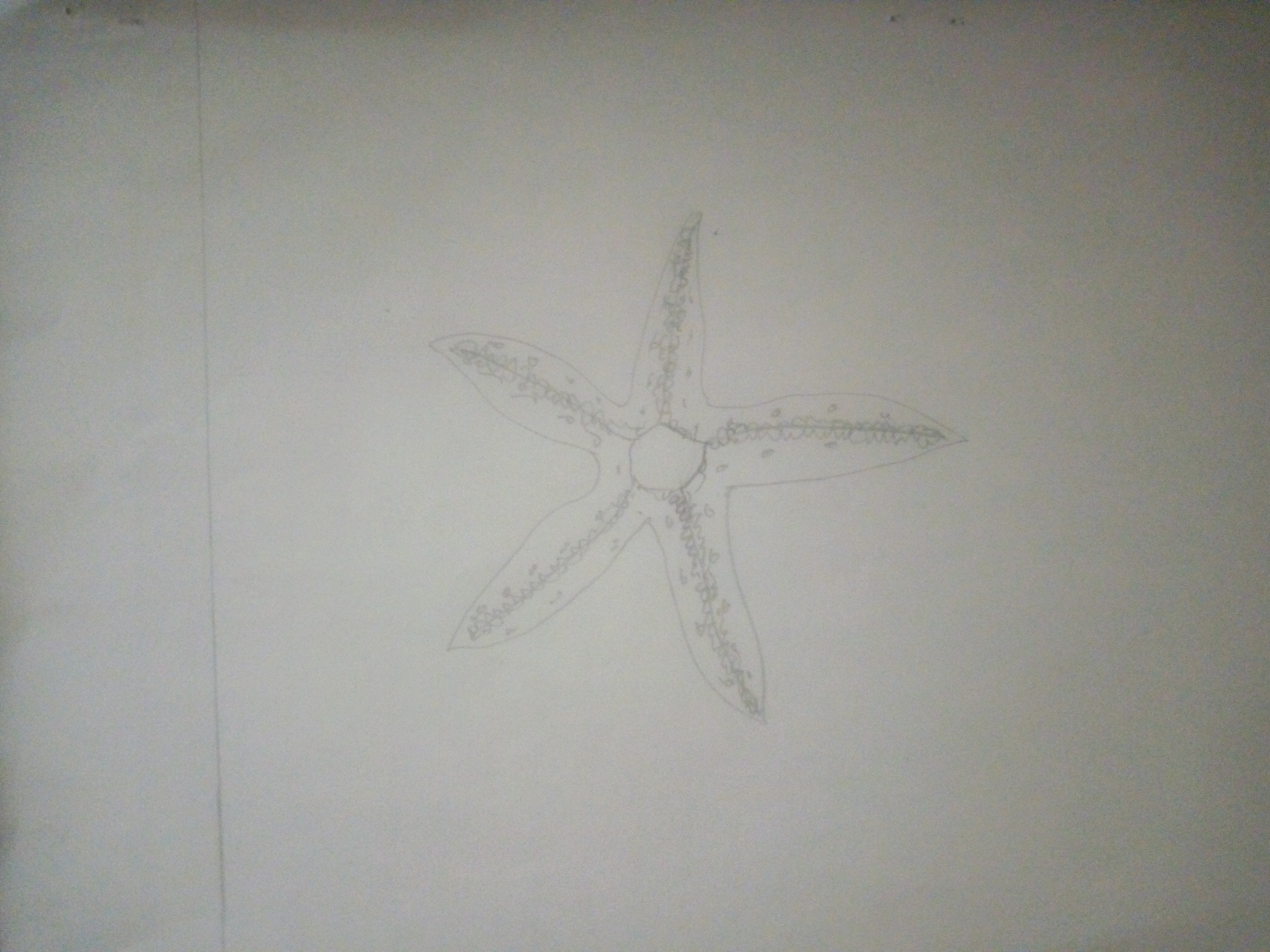 Step2: I started by drawing the five arms of a starfish as a framework.