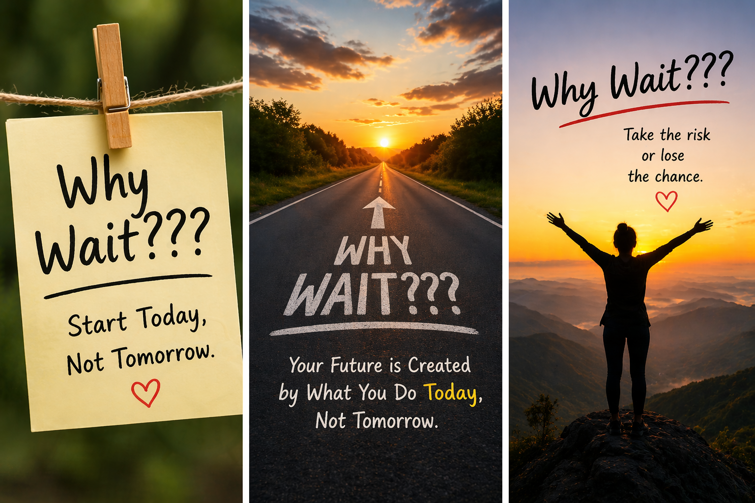 What does the phrase “Why Wait?” mean to you in your daily life? Share your thoughts with examples.
