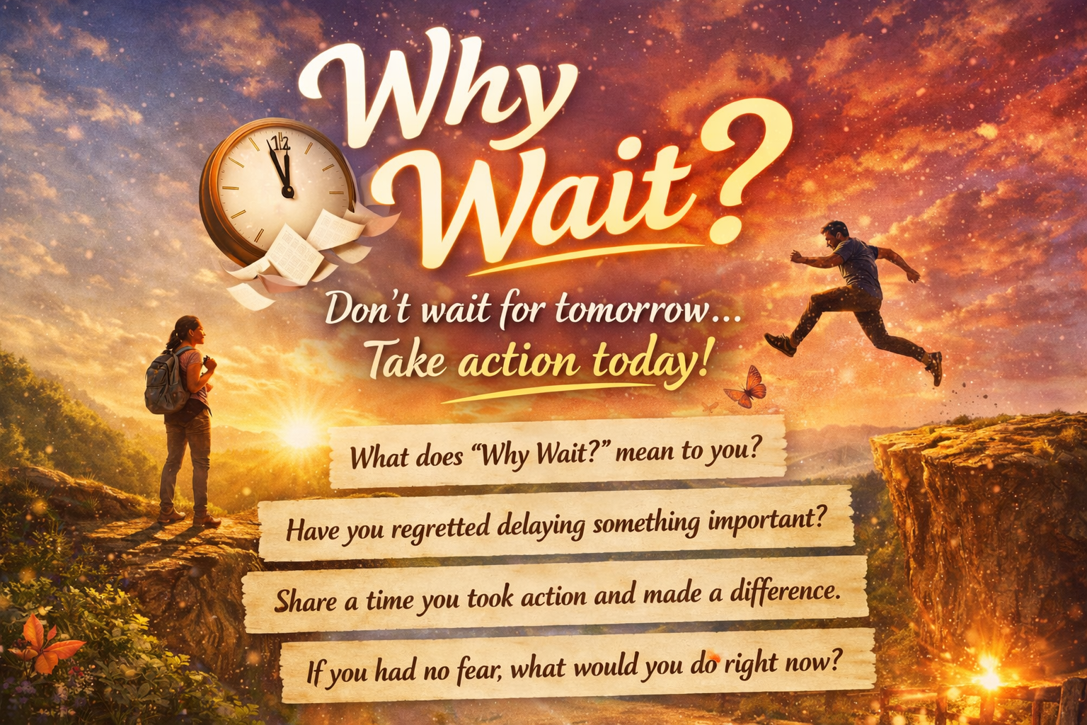 “Why Wait?” is a call to reflect on those moments and choose immediate action over delay. Sometimes, the smallest step taken today can create the biggest change tomorrow.