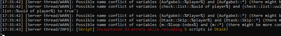 Die Änderungen am dtast-script sind hautpsächlich die Behebung von 53 kleinen Bugs sowie Änderungen, damit es mit Minecraftversion 1.15.2 funktioniert.