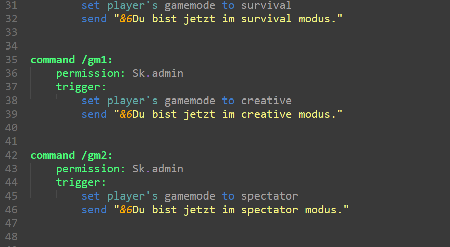 Der zweite Teil des Skriptes ermöglicht es Admins im Spiel schnell den Gamemode zu wechseln.