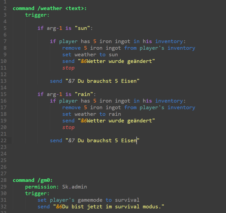Minecraft Script zum Wetterwechsel (alle Spieler) und für einen schnellen Gamemodewechsel (Admins) / Minecraft Script for changing the weather (all users) and for a quick game mode change (admins)