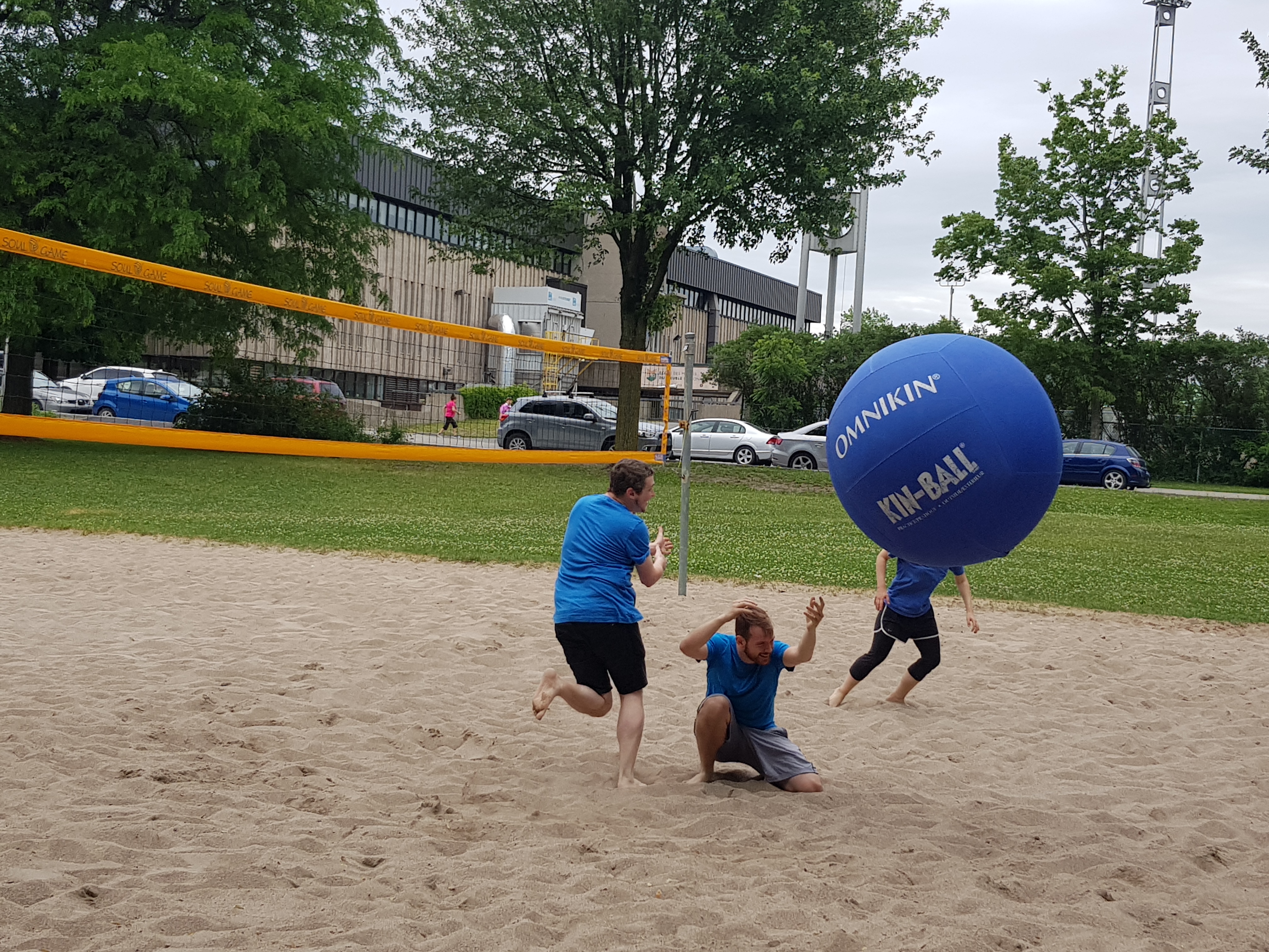 Mais même sans tout cela, on a rapidement du plaisir à jouer au Kin-Ball et frapper dans cet immense ballon.
