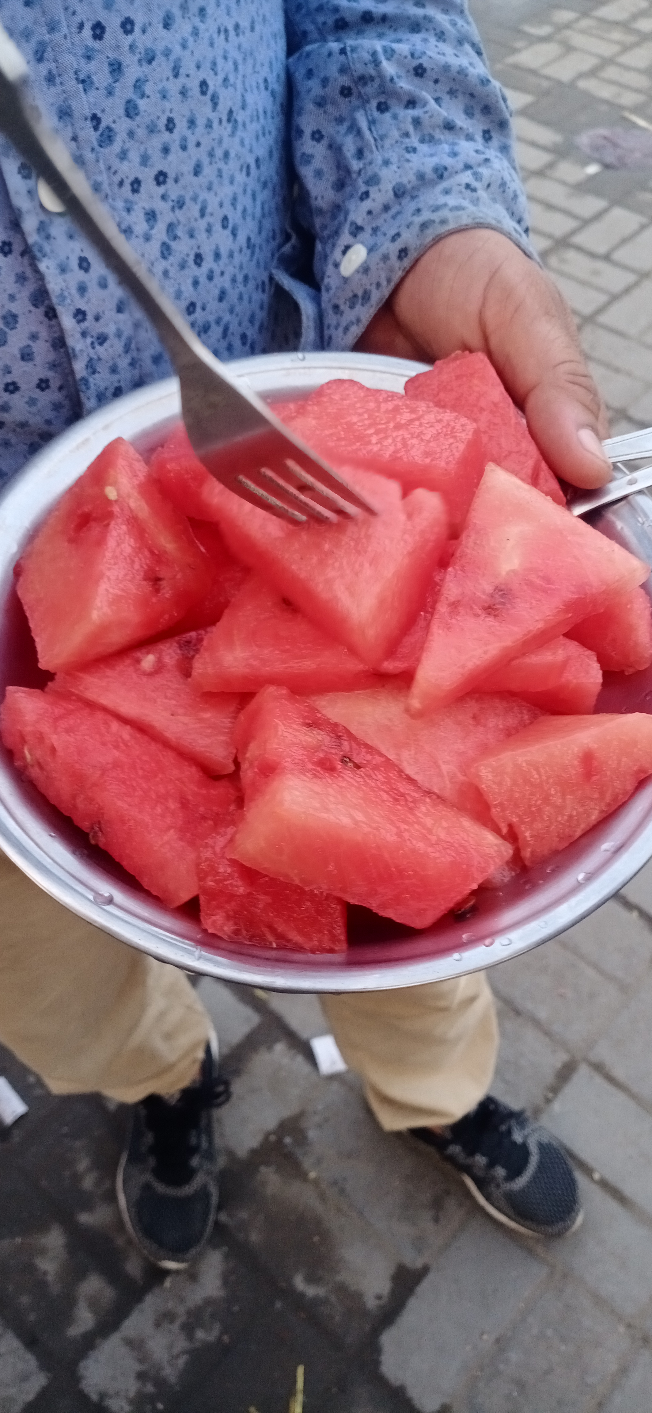 Today i captured the picture fir this contest when I eat this from food street. This is known as Water melon which we purchased the Bazar almost 100 Pakistani rupees this is so good and delicious in taste i also enjoy this with my friend. This is full of taste with sweet Sugar. Hope everyone like it and support me on this platform after see my Post here