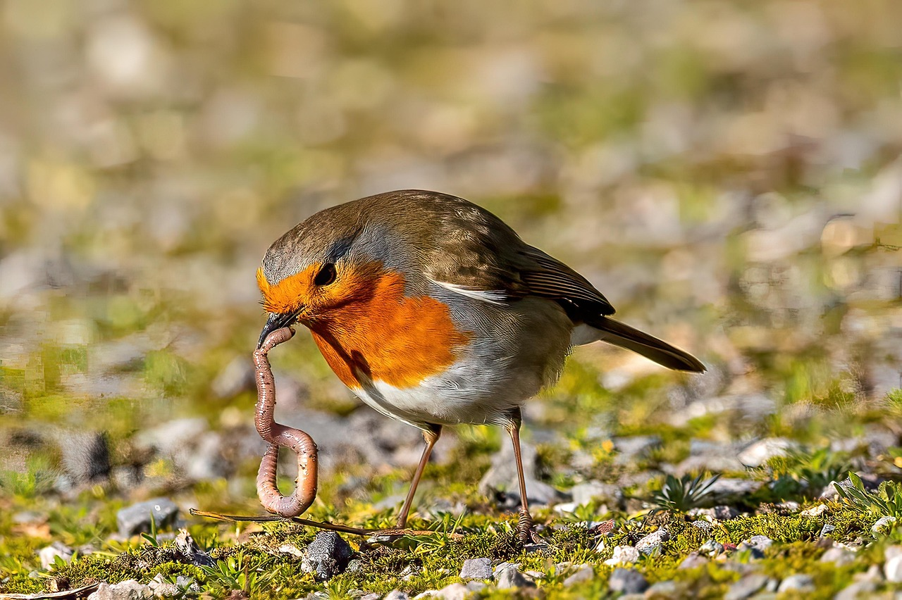 Once when I was there and while digging found relatively big worm, I just through it back on lawn, in this moment the little robin flew towards it and caught the worm. That was big for its size and he did not want to eat it but hold it in his beak and then flew away into the hedge. I wonder if he had there some little chicks. We never seen big robin family but mostly one of on and off the second one. But our robin remained with us and it comes every year again.