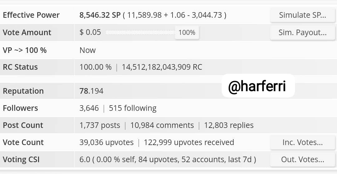 My steemit account name is @harferri according to my real name. Originally from Indonesia. I joined Steemit on December 16, 2016 and have been active until now. I was once entrusted as a Country Representative and several times as a community Curators Team. My other activities on the platform are as an Admin of the Steem Entrepreneurs Community and are active in verifying and commenting on posts on the community page. My account data is presented below