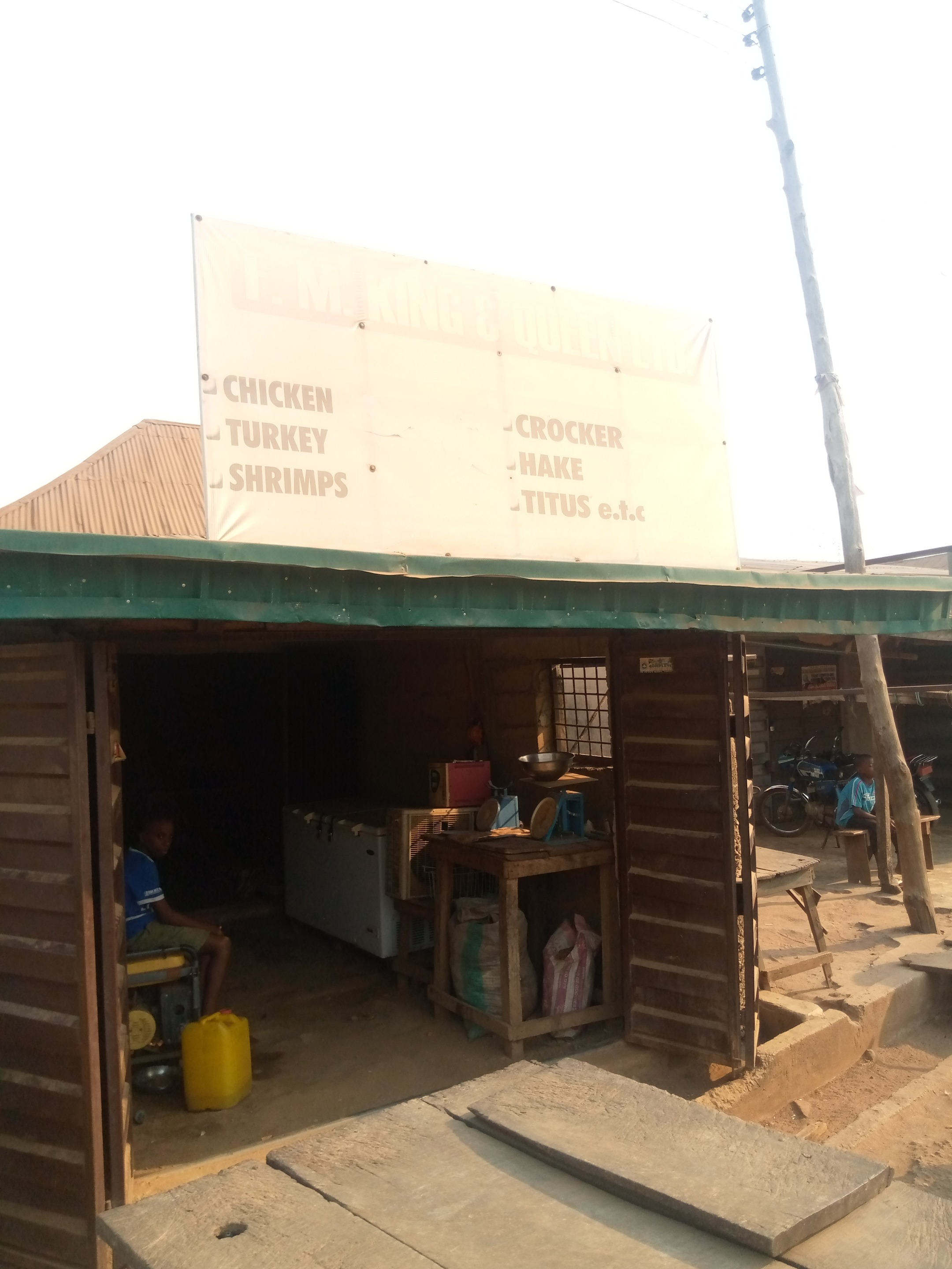 This is a spot where they sell ice chicken and turkey. This place is located close to the place where they sell recharge card in the market.